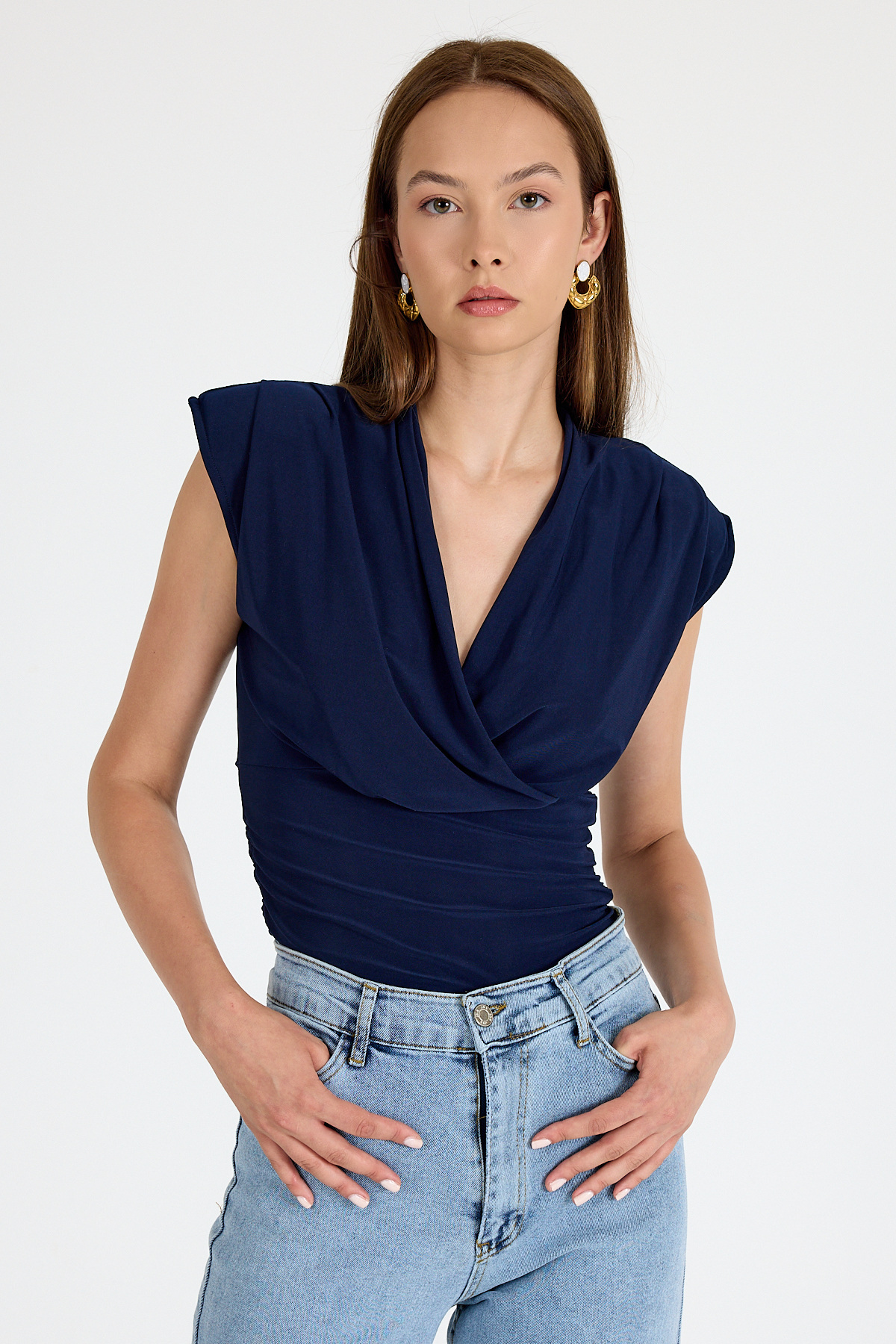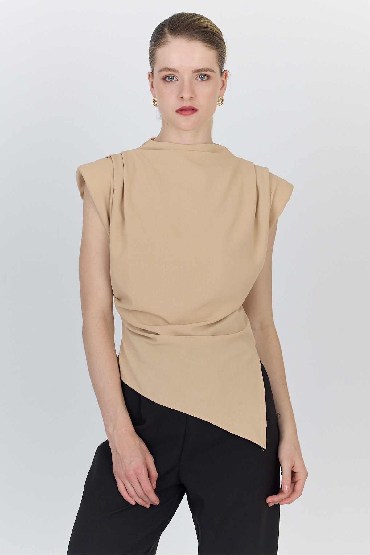 13185 Vatkalı Drapeli Kısa Kollu Bluz Ekru 13185 Vatkalı Drapeli Kısa Kollu Bluz Ekru 25Y1123UST128 L