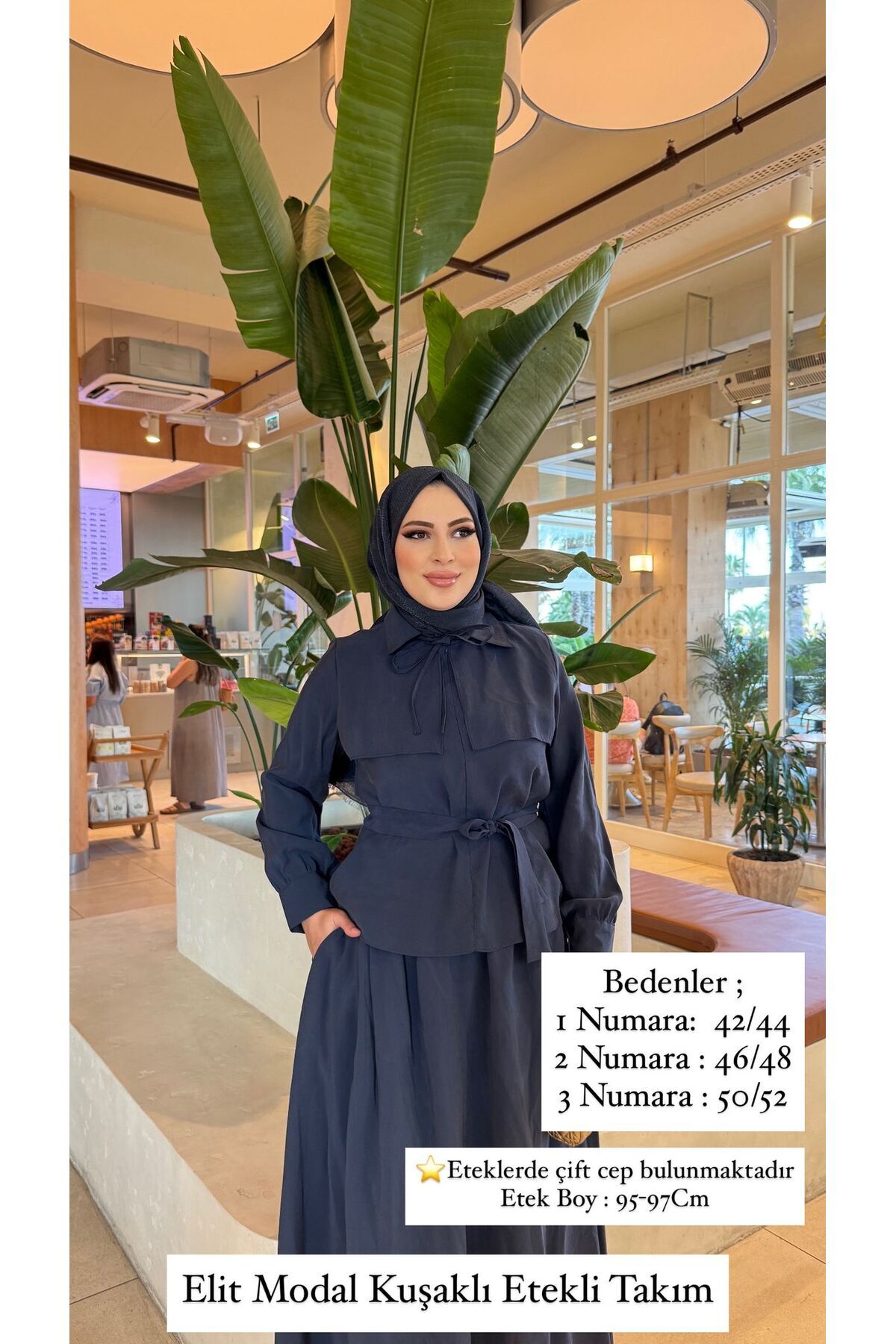Kadın Ince Broş Detaylı Bluz Etekli Modal Kahve Takım Kadın Ince Broş Detaylı Bluz Etekli Modal Kahve Takım 2528031820 42