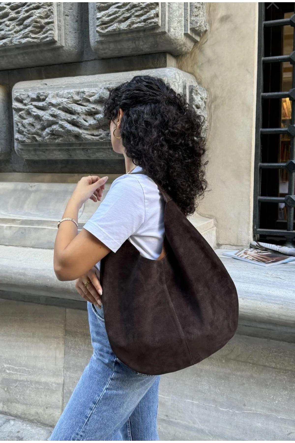 Hakiki Deri Süet Kadın Omuz Çantası Gerçek Deri Kahverengi Hakiki Deri Süet Kadın Omuz Çantası Gerçek Deri Kahverengi MFLS106-7 تک سایز