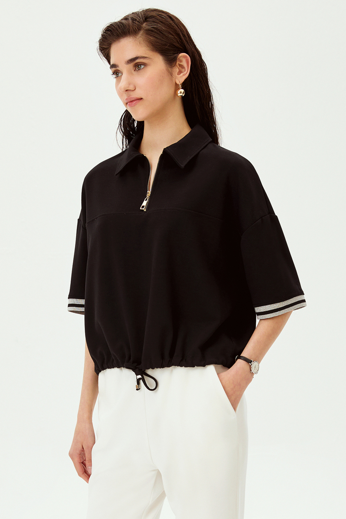 Düşük Kol Bağcık Detaylı Fermuarlı Rahat Kalıp Örme Tişört Düşük Kol Bağcık Detaylı Fermuarlı Rahat Kalıp Örme Tişört fermuarli-orme-tisort-a24k04176022 2XL