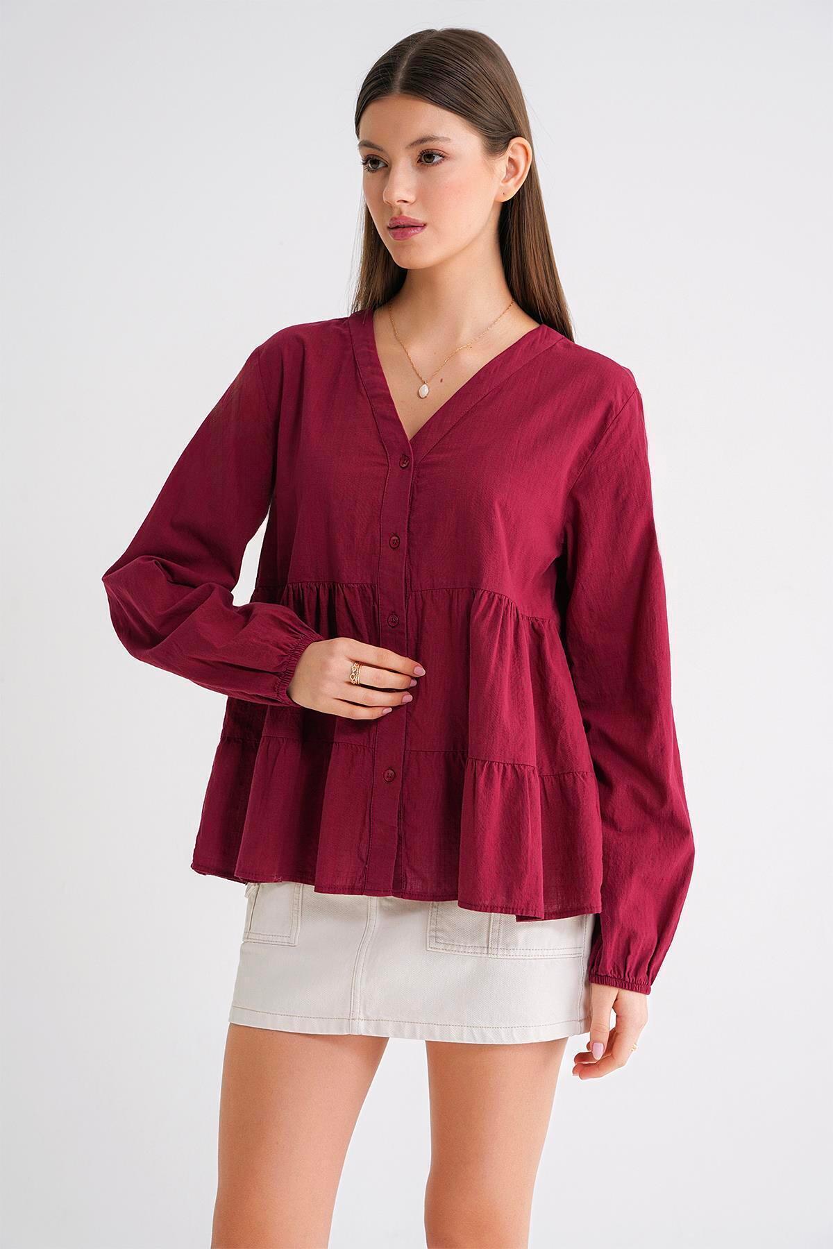 4563 Kadın Yakası Bağlamalı Kolu Lastikli Bol Müslin Gömlek Siyah 4563 Kadın Yakası Bağlamalı Kolu Lastikli Bol Müslin Gömlek Siyah Y25GML4563 L