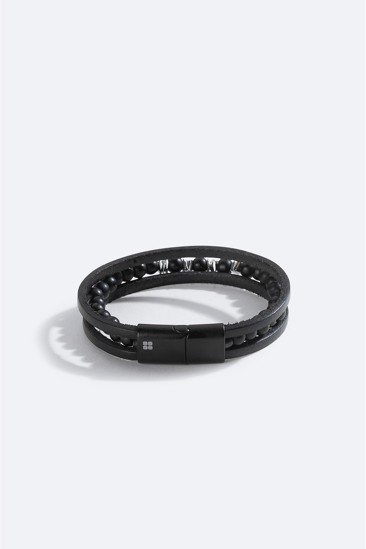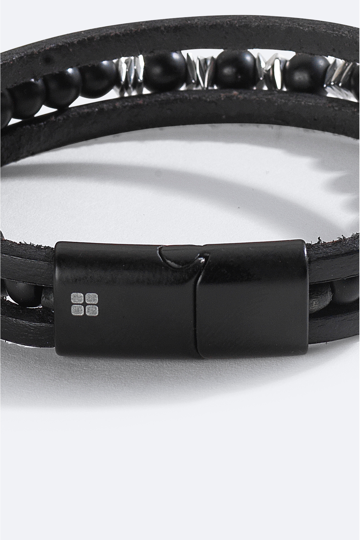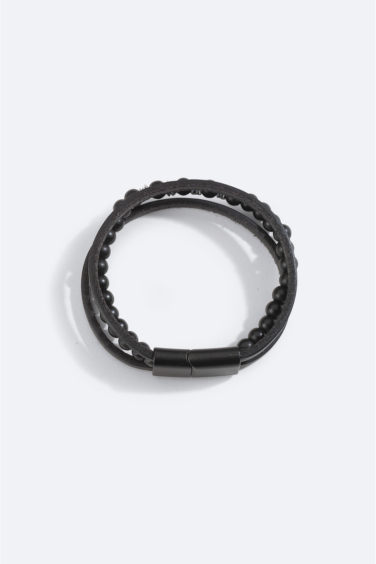 Erkek Siyah Deri ve Hematit Taşlı Bileklik A51Y9600 Erkek Siyah Deri ve Hematit Taşlı Bileklik A51Y9600 تک سایز