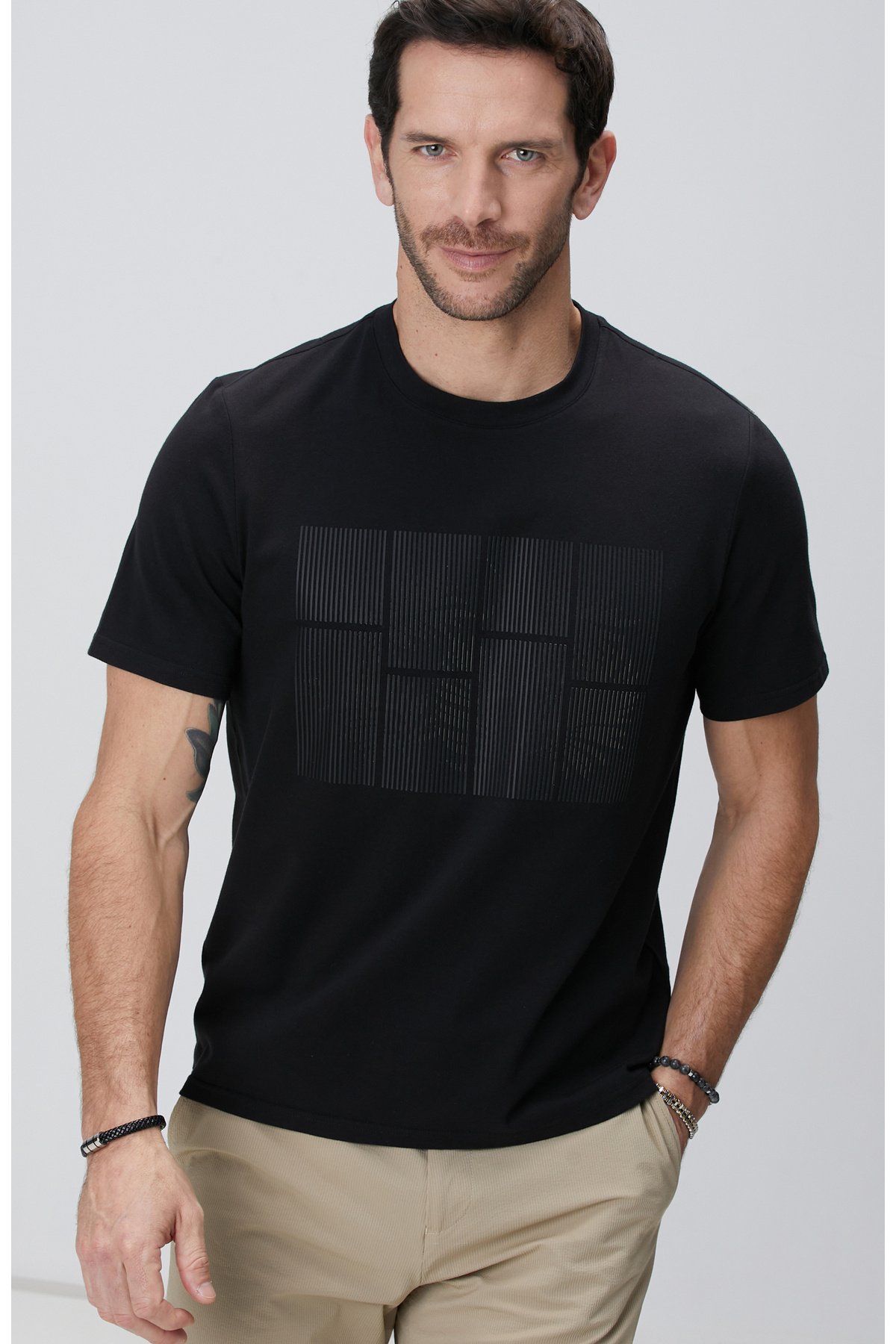 Siyah Nakışlı Örme T-shirt Siyah Nakışlı Örme T-shirt 1094090 2XL
