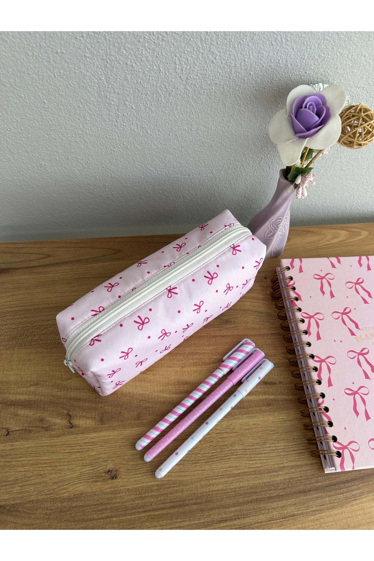 Kibar tatlı pembe fiyonklu beyaz fermuarlı kalem kutusu kalemlik astarlıdır yıkanabilir 20-7-6cm Kibar tatlı pembe fiyonklu beyaz fermuarlı kalem kutusu kalemlik astarlıdır yıkanabilir 20-7-6cm 1982z297 تک سایز