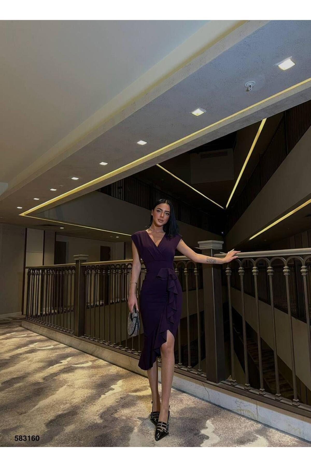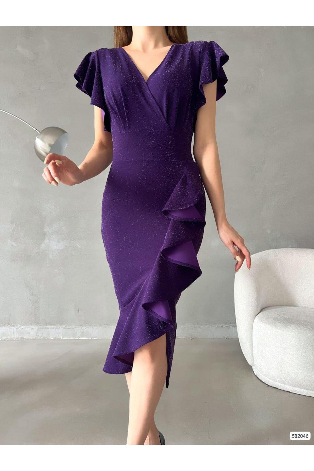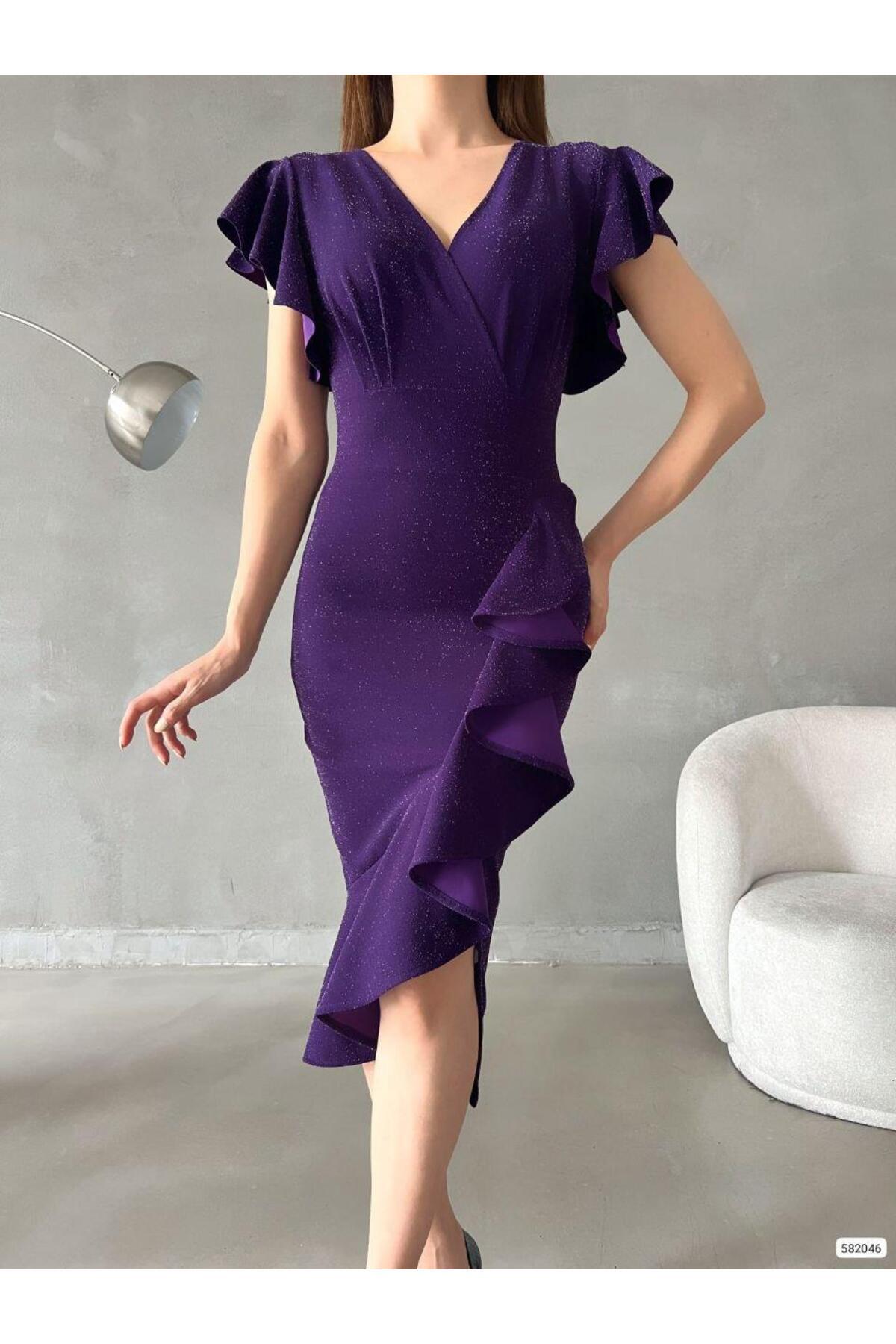 Flowers Volanlı Kumaş Simli Elbise 582046 Mor Flowers Volanlı Kumaş Simli Elbise 582046 Mor 582046 MOR L