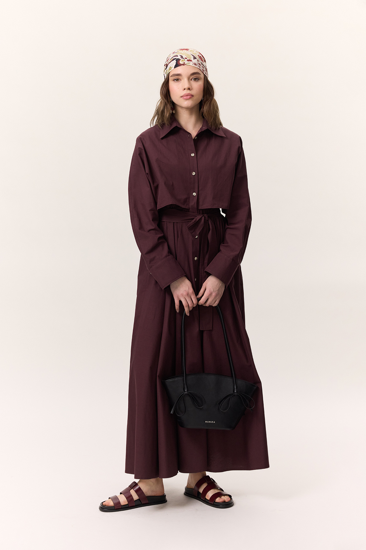 TRENÇ TARZ GÖMLEK ELBİSE BORDO TRENÇ TARZ GÖMLEK ELBİSE BORDO SS25ELB00005 L