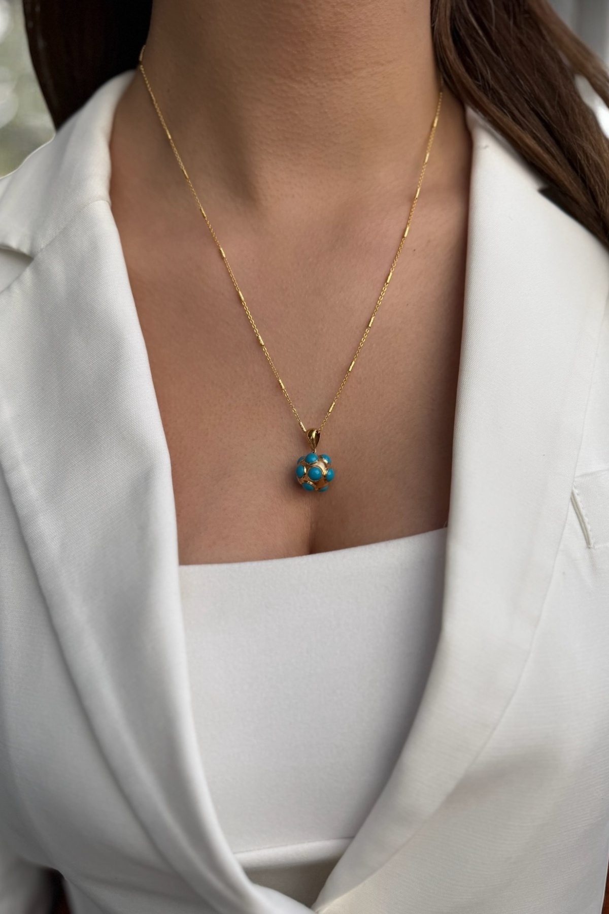 22 AYAR FİRUZE TAŞLI TOP VE İTALYAN ZİNCİRLİ ALTIN KOLYE 22 AYAR FİRUZE TAŞLI TOP VE İTALYAN ZİNCİRLİ ALTIN KOLYE UTKUKL1149 55 cm