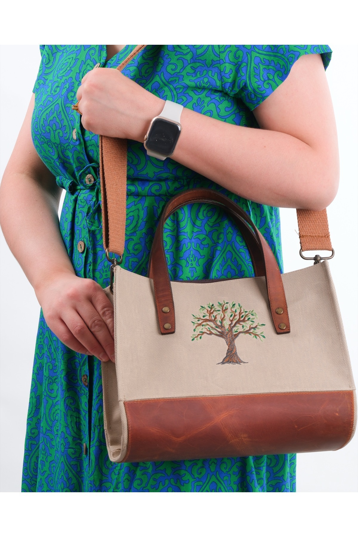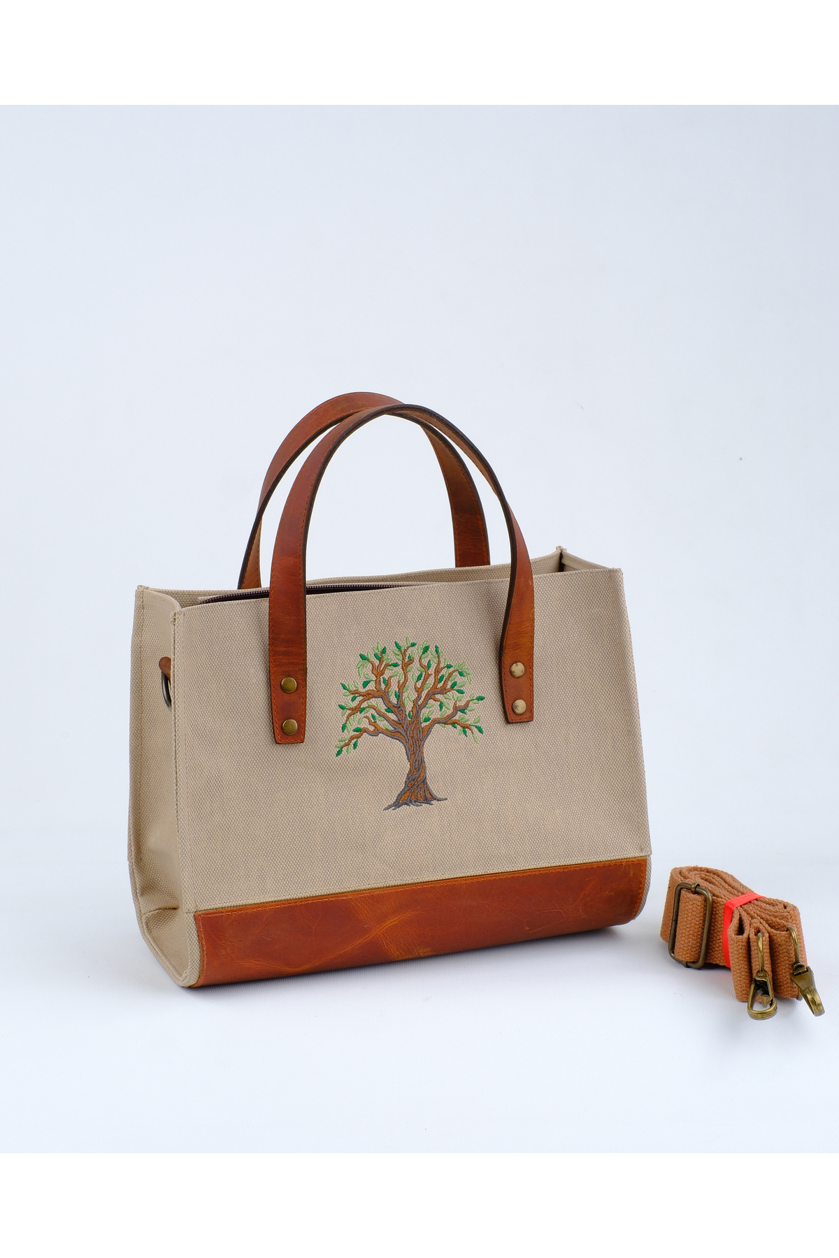 Butikmutik Zeytin Ağacı Nakışlı Gerçek Deri-Kanvas Çanta Butikmutik Zeytin Ağacı Nakışlı Gerçek Deri-Kanvas Çanta deri-kanvas lacivert zeytin Küçük Boy