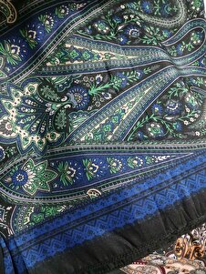 Retro Etnik Desen Pamuk Viskon Şal Lacivert Yeşil Retro Etnik Desen Pamuk Viskon Şal Lacivert Yeşil Miz_Yıldız 70 x 180
