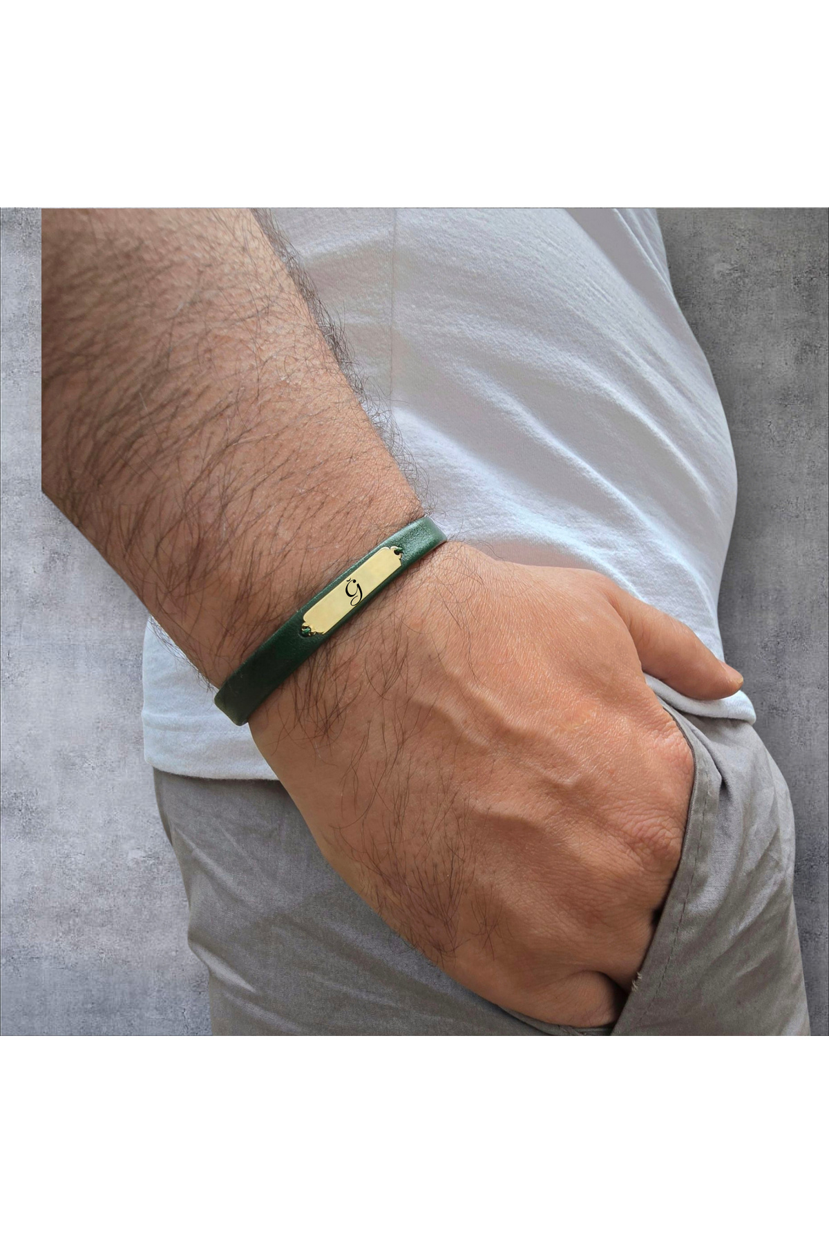 14 Ayar Altın Plakalı Hakiki Derili Erkeklere Özel Dikdörtgen Motifli Harf Bilekliği-371harf-yeşil 14 Ayar Altın Plakalı Hakiki Derili Erkeklere Özel Dikdörtgen Motifli Harf Bilekliği-371harf-yeşil 371-yedortderi-lumg-MO2 Standart