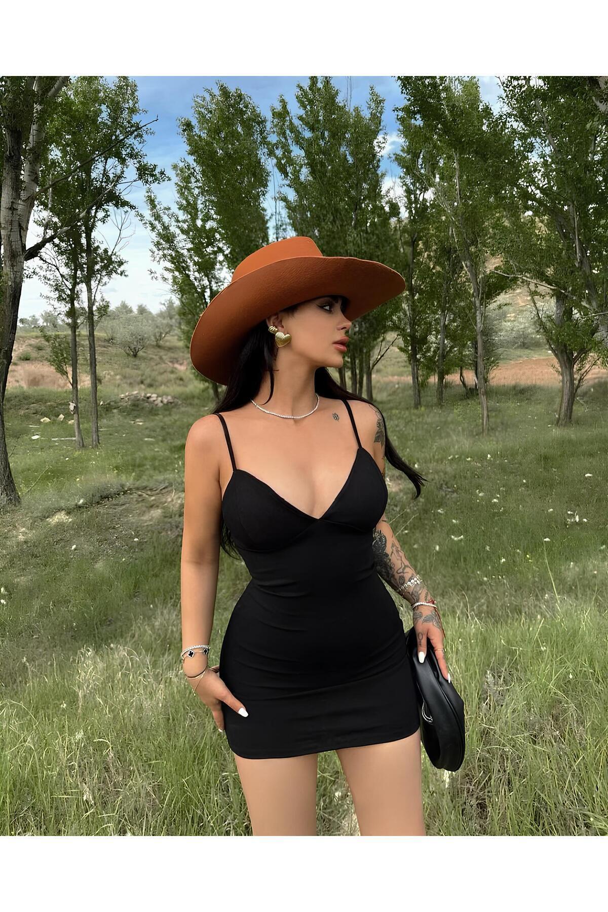 Kadın Askılı Tül Detaylı Mini Elbise Kadın Askılı Tül Detaylı Mini Elbise 3547 L
