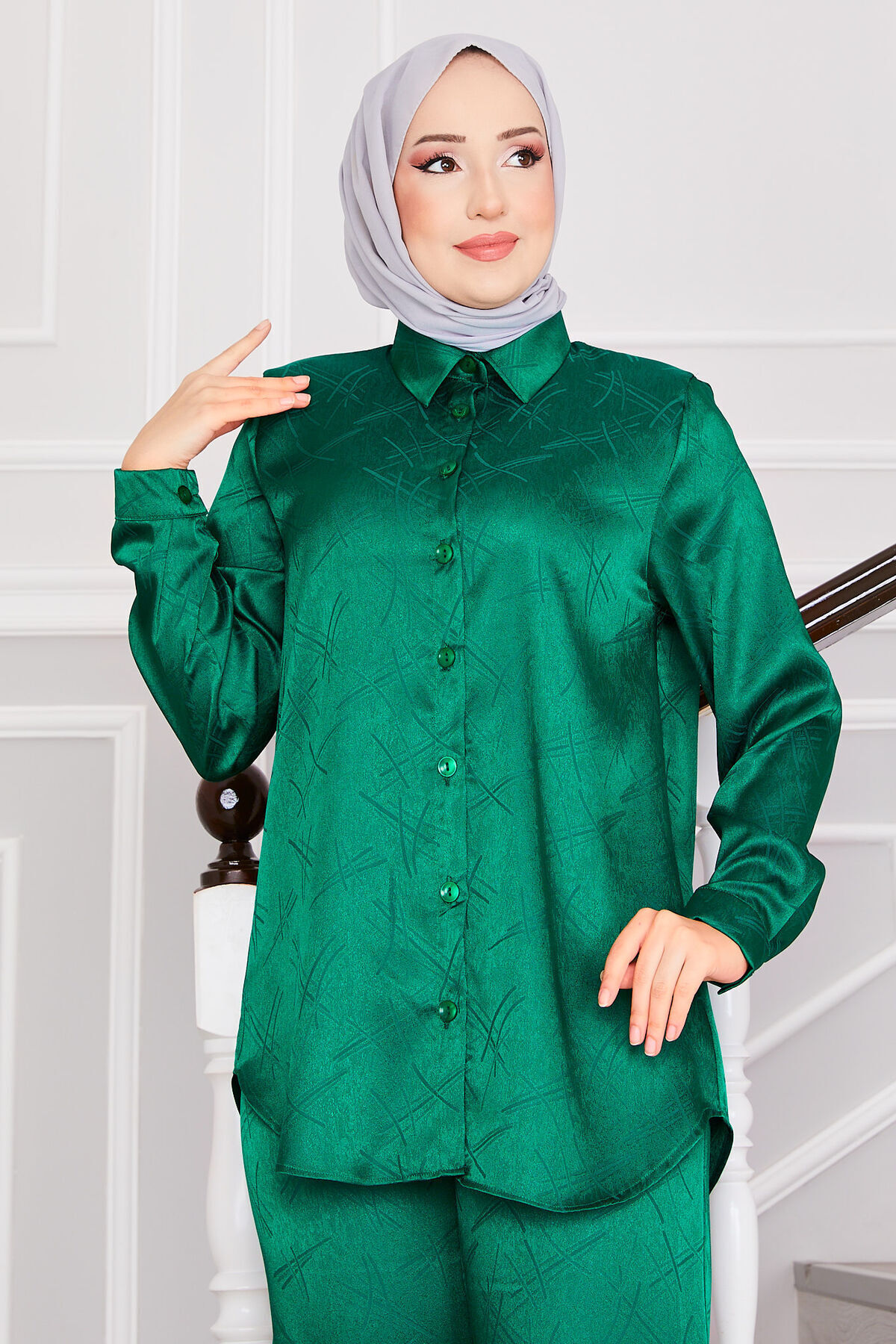 Jakarlı İkili Pantolon Tesettür Takım Zümrüt Jakarlı İkili Pantolon Tesettür Takım Zümrüt 553528-125M00620955 46