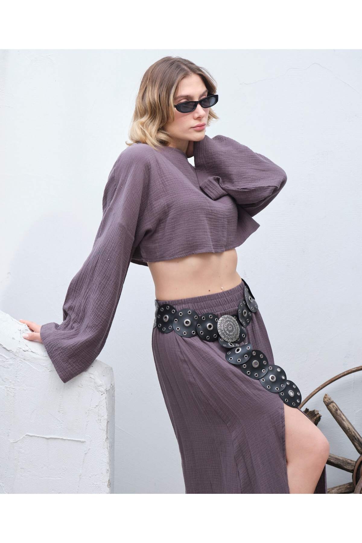 % 100 PAMUK KUMAŞ CROP ETEK BOHEM TAKIM % 100 PAMUK KUMAŞ CROP ETEK BOHEM TAKIM BH6676 L