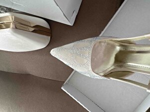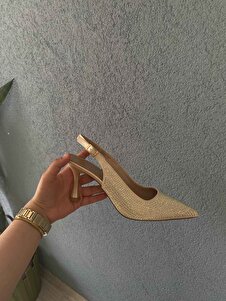 Kadın Taş İşlemeli İnce Topuklu Gece Ayakkabısı ve Çanta Takımı Altın Kadın Taş İşlemeli İnce Topuklu Gece Ayakkabısı ve Çanta Takımı Altın MİTSURİMAL 40