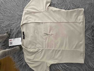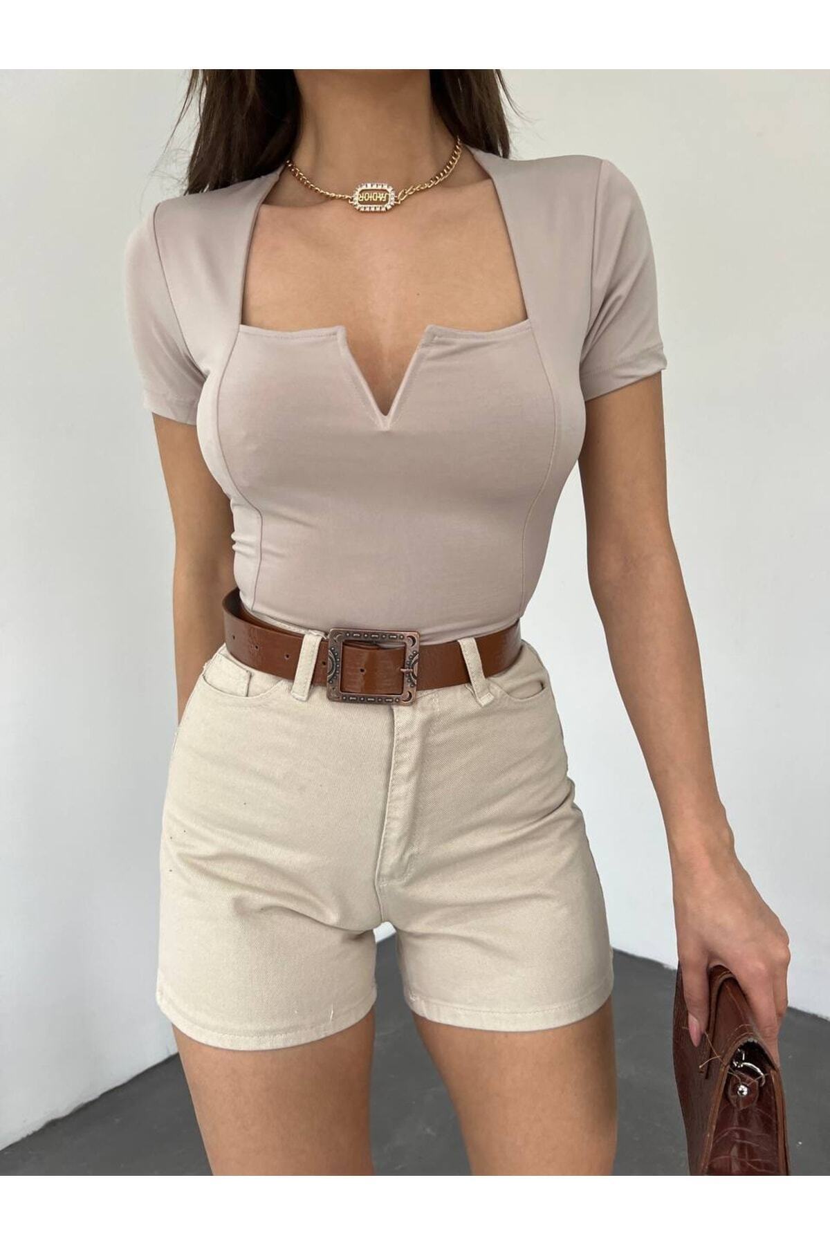 Kadın Bej Sandy Kumaş Kare Yaka Crop Kadın Bej Sandy Kumaş Kare Yaka Crop ZG6510 L