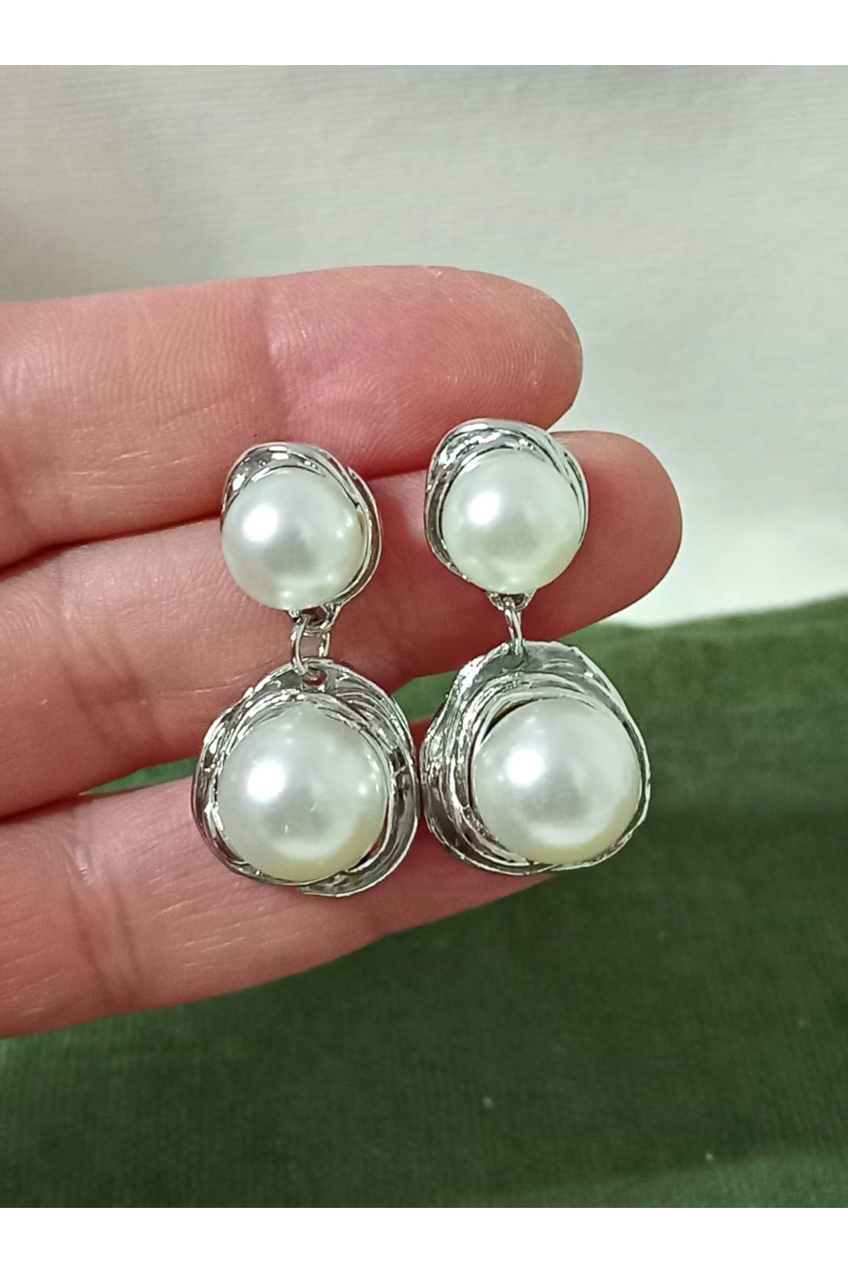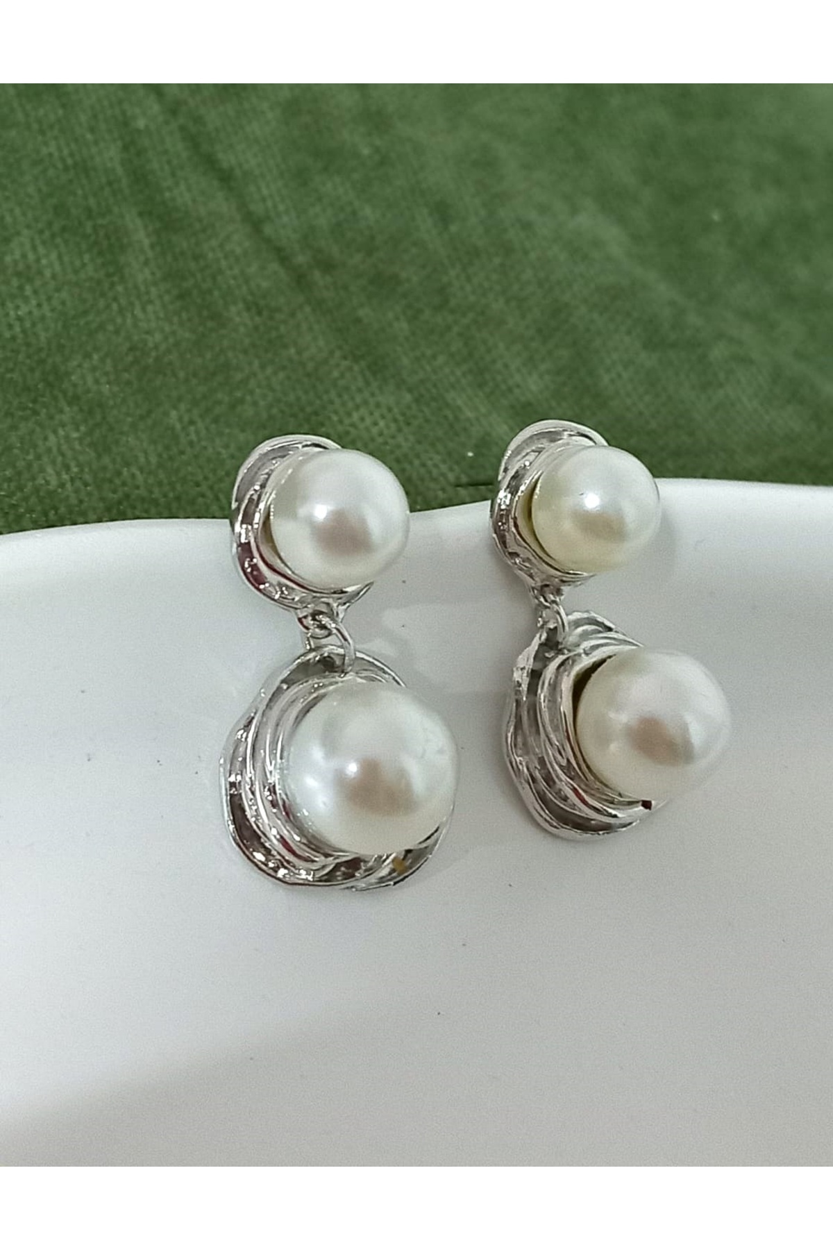 Gold Çift İncili Şık Kadın Küpe Gold Çift İncili Şık Kadın Küpe BER.2027 تک سایز