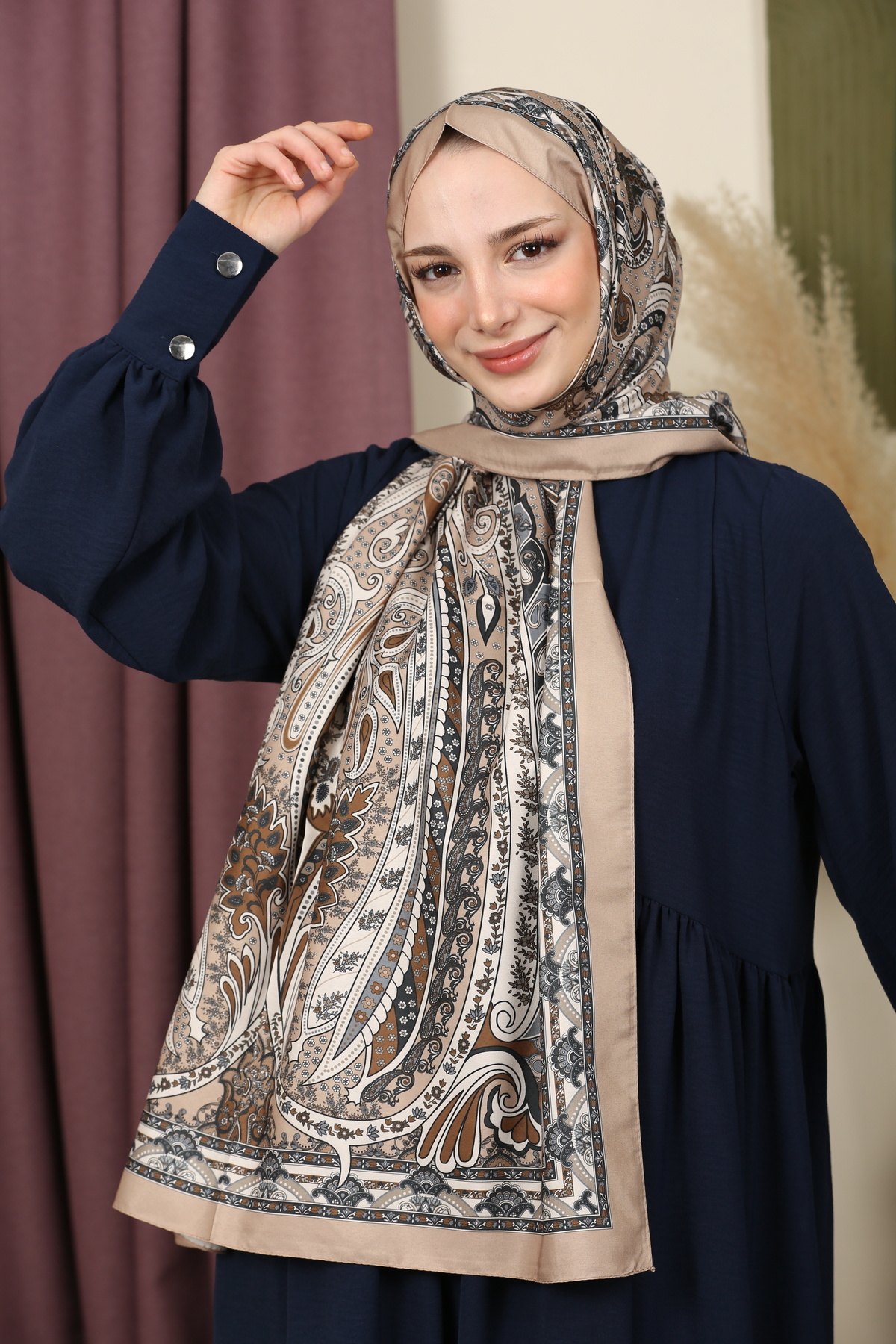 Retro Etnik Desen Pamuk Viskon Şal Açık Kahverengi Retro Etnik Desen Pamuk Viskon Şal Açık Kahverengi VovMicro 70 x 180