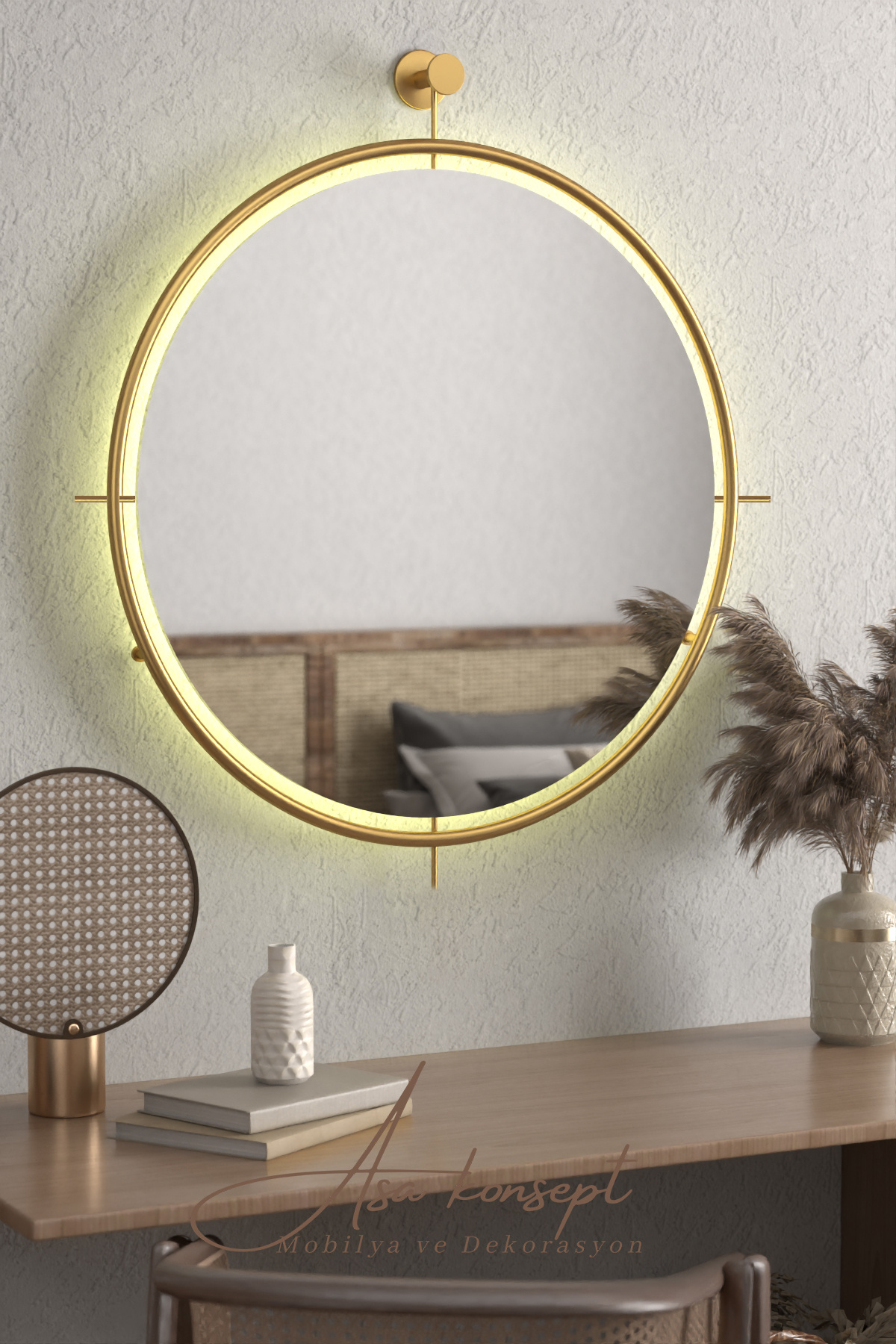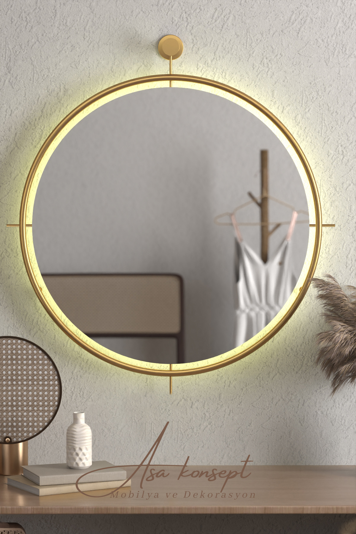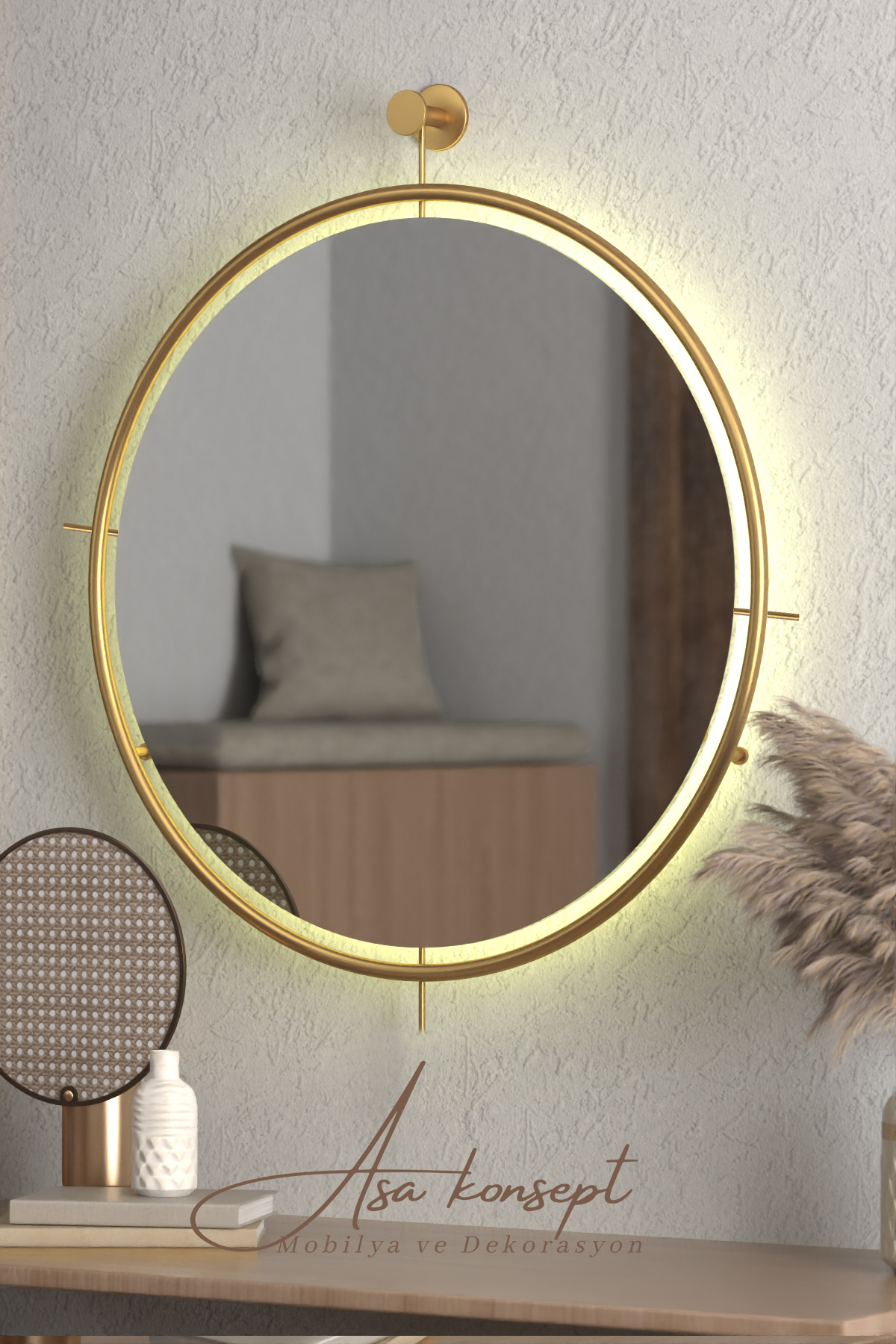LED li Simirna Ayna GOLD 60 cm Dekoratif Hol Koridor Duvar Salon Mutfak Banyo Wc Ofis Makyaj Aynası LED li Simirna Ayna GOLD 60 cm Dekoratif Hol Koridor Duvar Salon Mutfak Banyo Wc Ofis Makyaj Aynası ASA003009LSA002 60 x 70