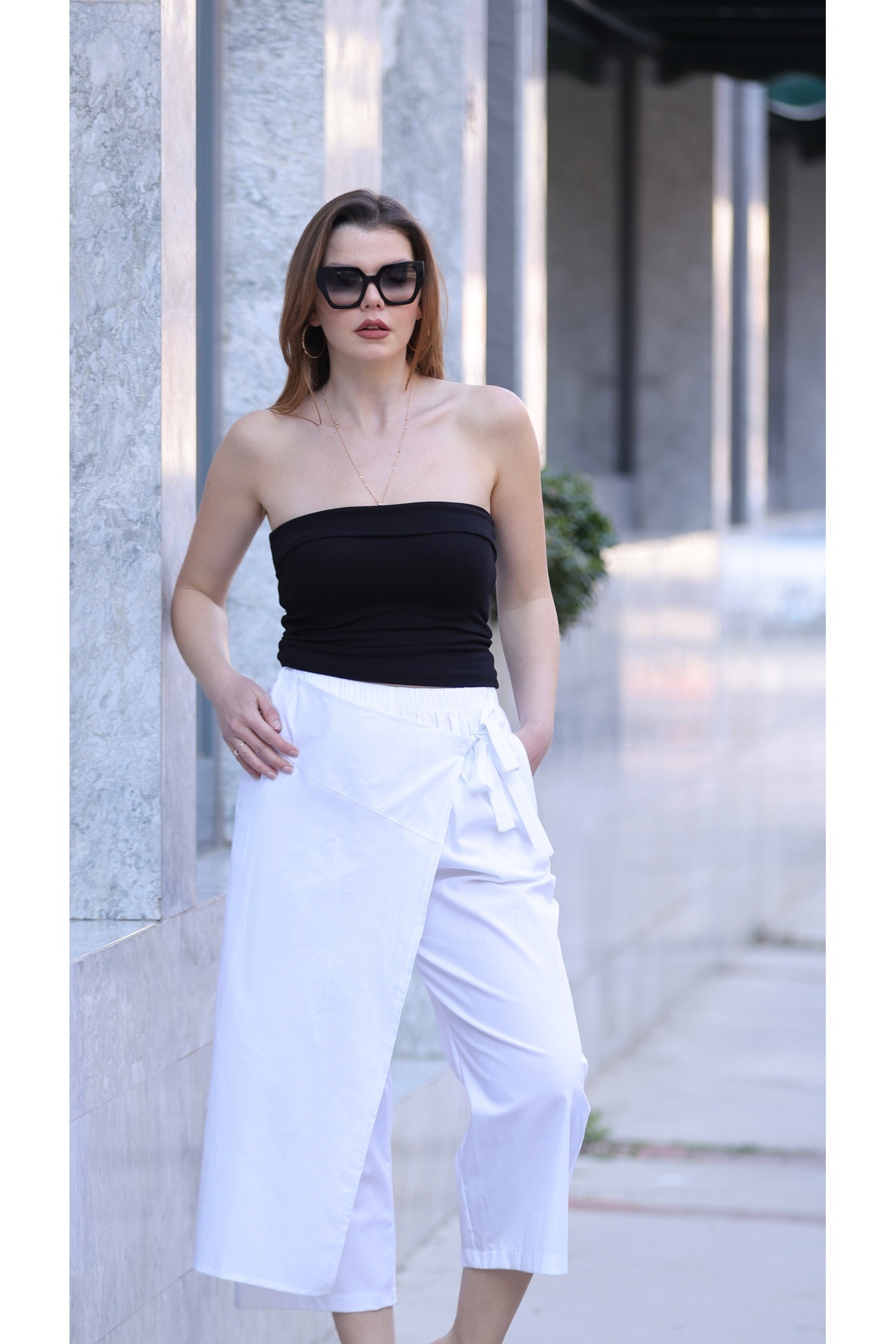 Poplin Beyaz Zarf Pantolon Etek Görünümlü Belden Bağlamalı Poplin Beyaz Zarf Pantolon Etek Görünümlü Belden Bağlamalı BU-1022