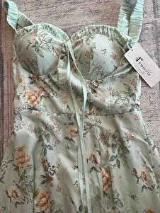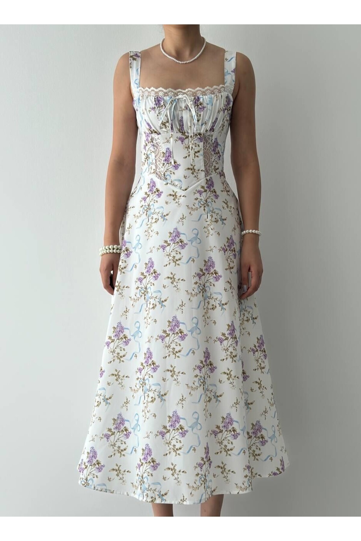 Kadın Çiçekli Midi Boy Yırtmaçlı Elbise Kadın Çiçekli Midi Boy Yırtmaçlı Elbise ELB-25Y-1005 L