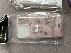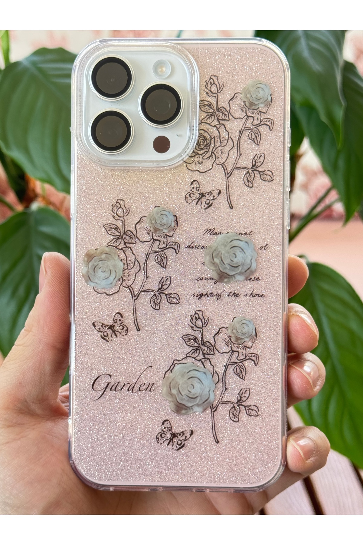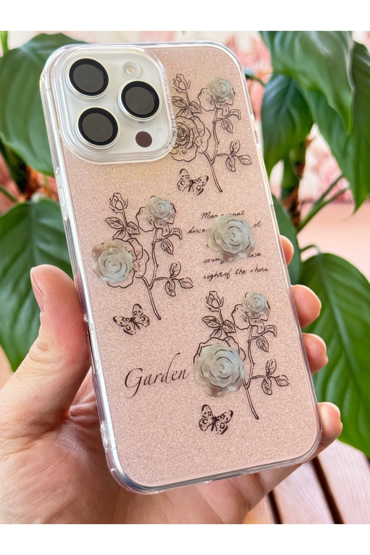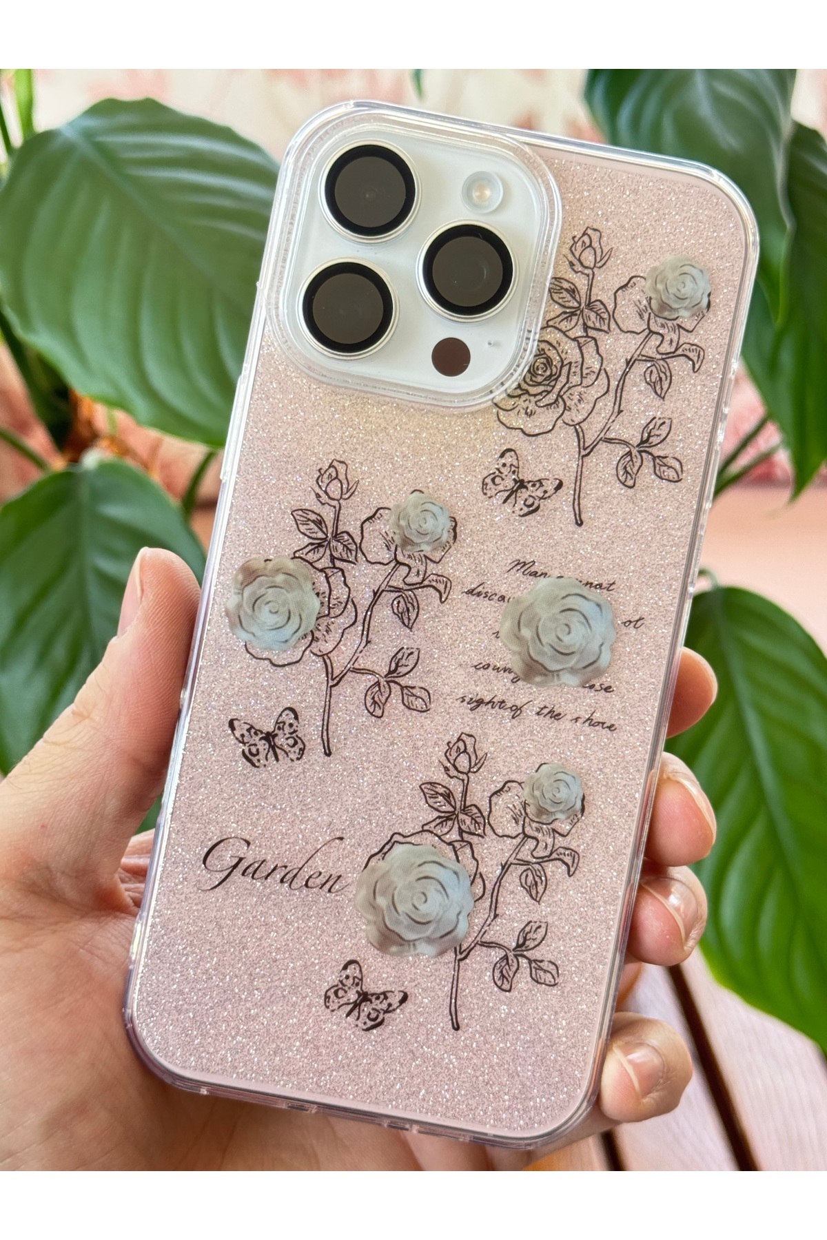 Apple iPhone 14 Pro Uyumlu Kılıf Simli Beyaz Gül Desenli Renkli Parlak Darbe Emici Kapak Apple iPhone 14 Pro Uyumlu Kılıf Simli Beyaz Gül Desenli Renkli Parlak Darbe Emici Kapak FIGURLU IPHONE 14 PRO تک سایز