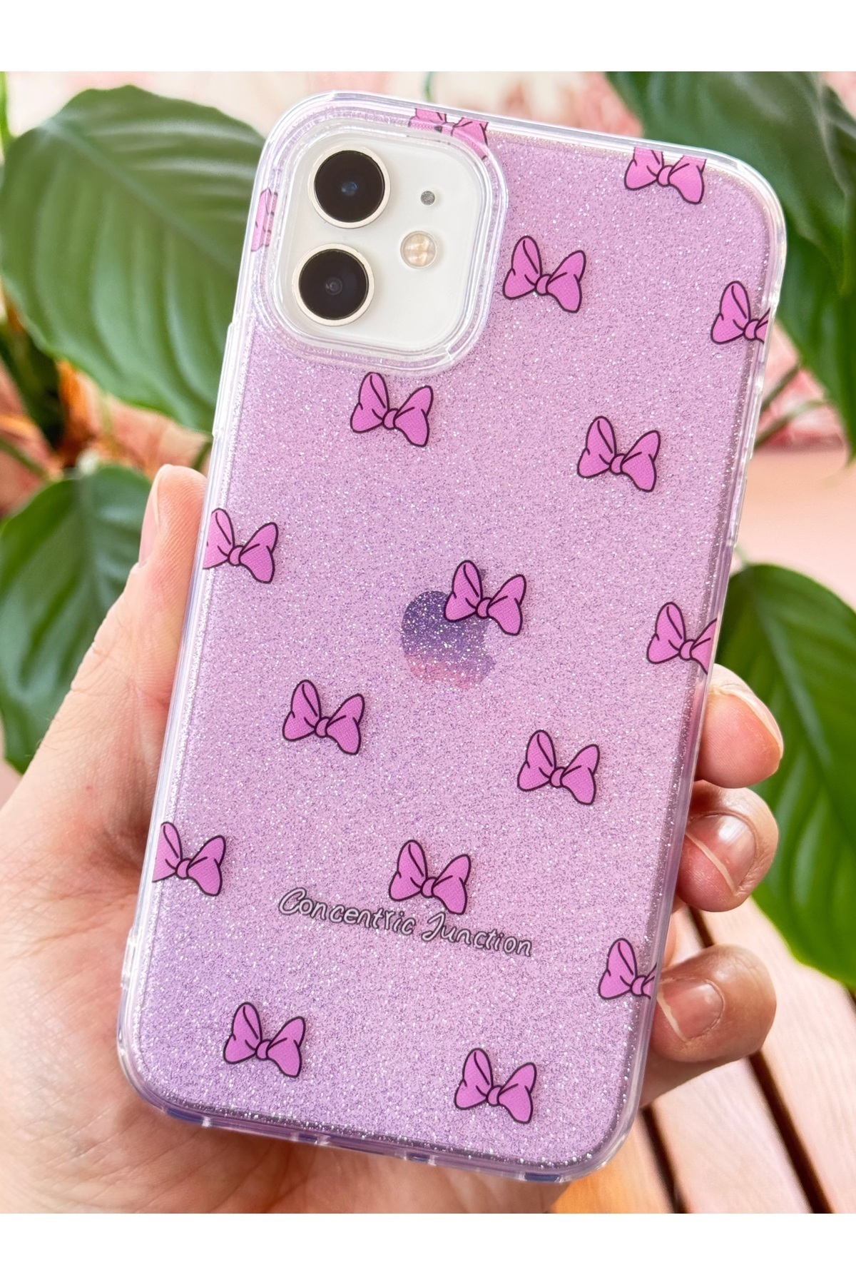 Apple iPhone 12/12 Pro Uyumlu Kılıf Mor Simli Fiyonk Desenli Renkli Parlak Darbe Emici Kapak Apple iPhone 12/12 Pro Uyumlu Kılıf Mor Simli Fiyonk Desenli Renkli Parlak Darbe Emici Kapak FIGURLU IPHONE 12 تک سایز