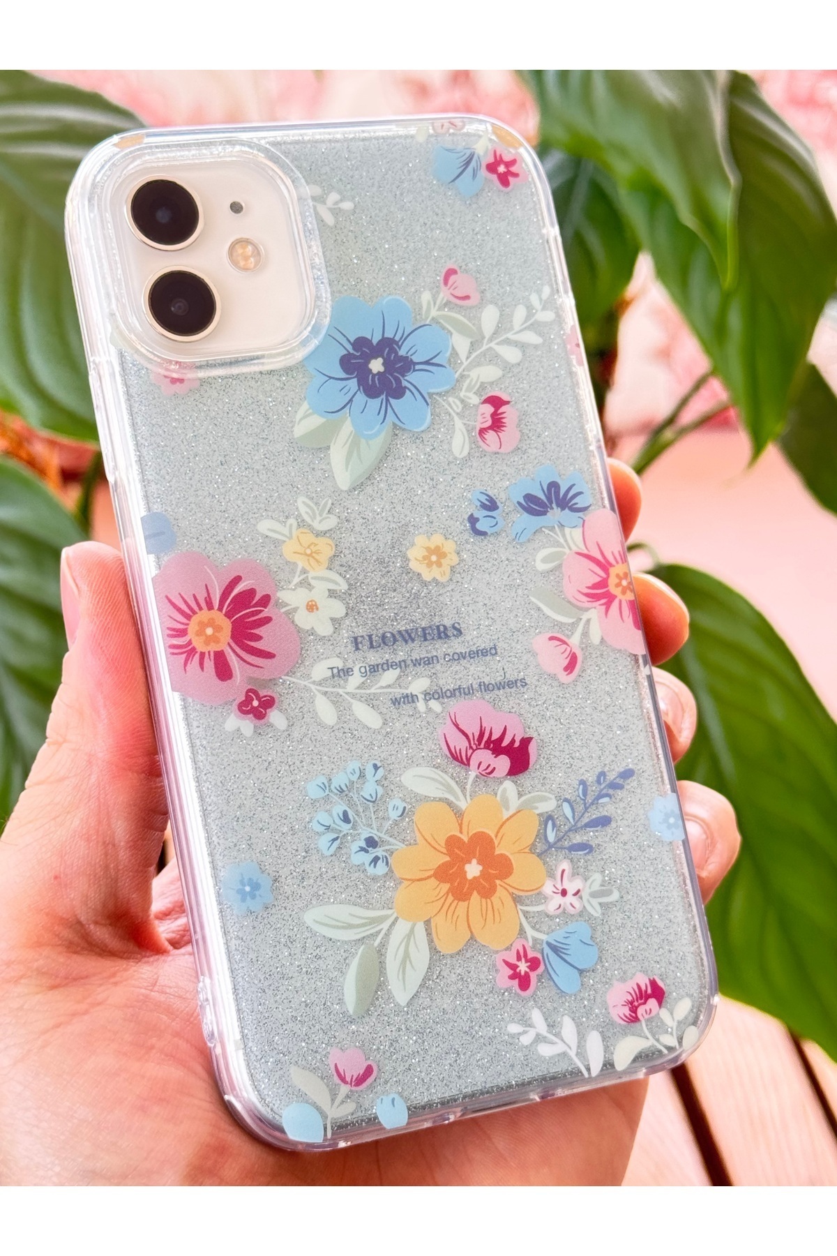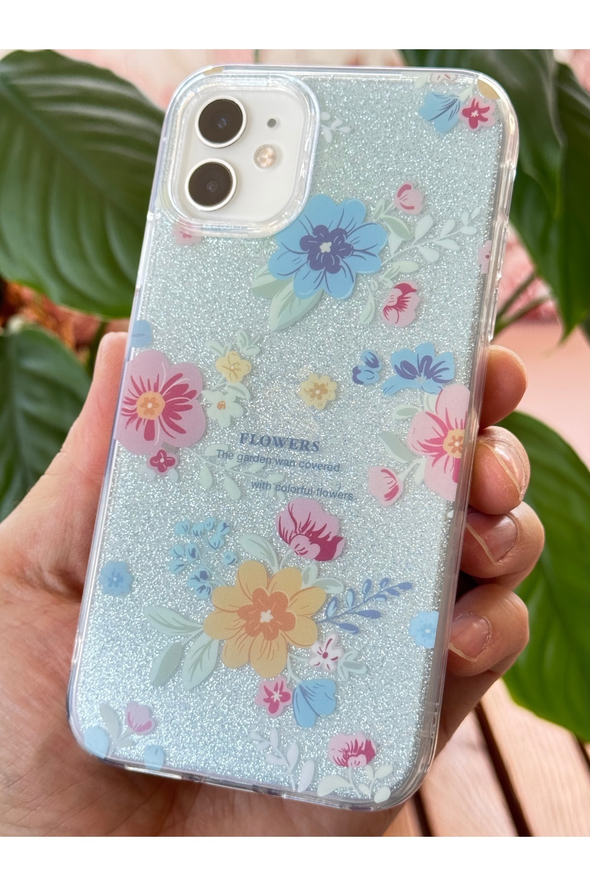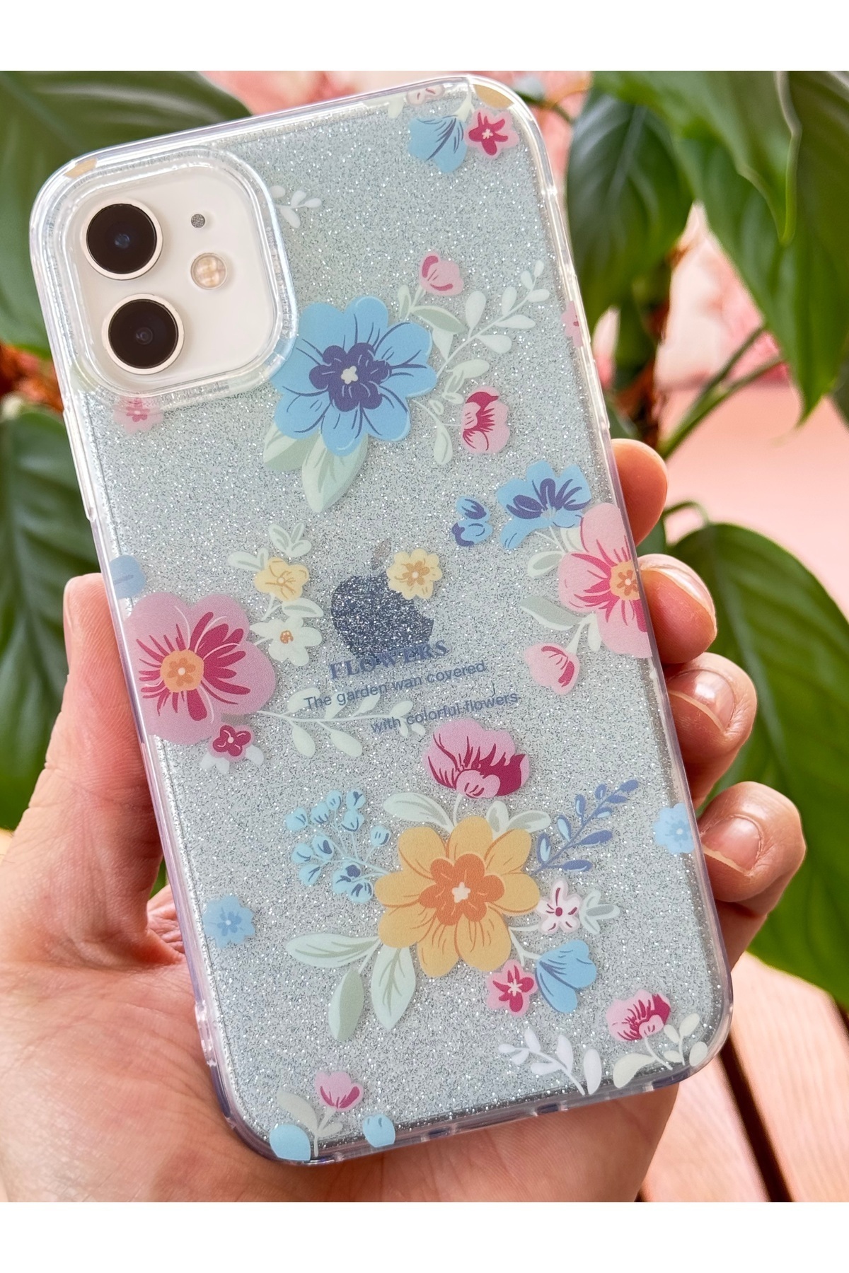 Apple iPhone 12/12 Pro Uyumlu Kılıf Mavi Simli Çiçek Desenli Renkli Parlak Darbe Emici Kapak Apple iPhone 12/12 Pro Uyumlu Kılıf Mavi Simli Çiçek Desenli Renkli Parlak Darbe Emici Kapak FIGURLU IPHONE 12 تک سایز