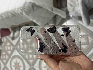 Apple iPhone 15 Pro Uyumlu Kılıf Simli Siyah Kelebek Desenli Renkli Parlak Darbe Emici Kapak Apple iPhone 15 Pro Uyumlu Kılıf Simli Siyah Kelebek Desenli Renkli Parlak Darbe Emici Kapak FIGURLU IPHONE 15 PRO تک سایز