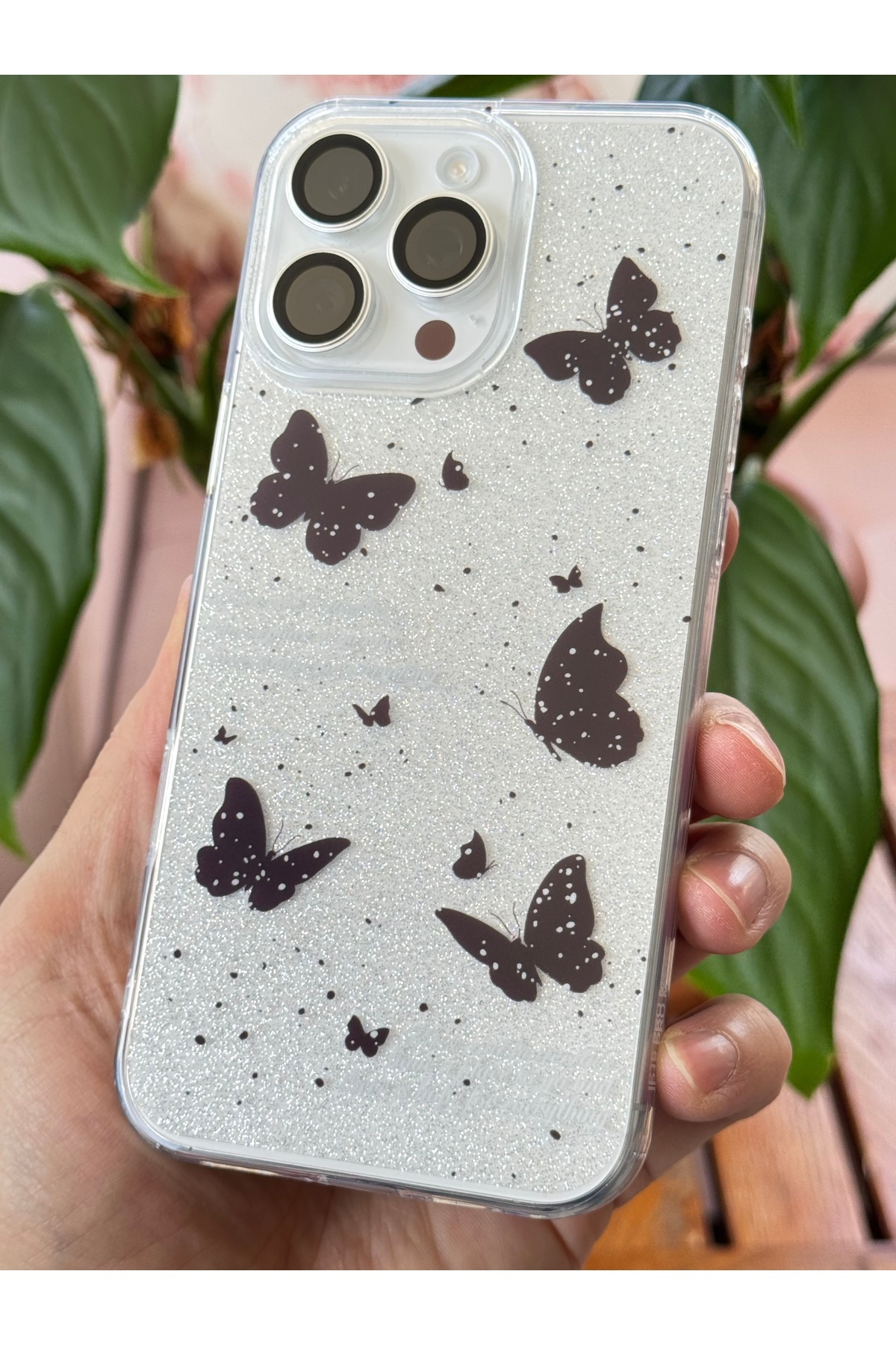 Apple iPhone 16 Pro Uyumlu Kılıf Simli Siyah Kelebek Desenli Renkli Parlak Darbe Emici Kapak Apple iPhone 16 Pro Uyumlu Kılıf Simli Siyah Kelebek Desenli Renkli Parlak Darbe Emici Kapak FIGURLU IPHONE 16 PRO تک سایز