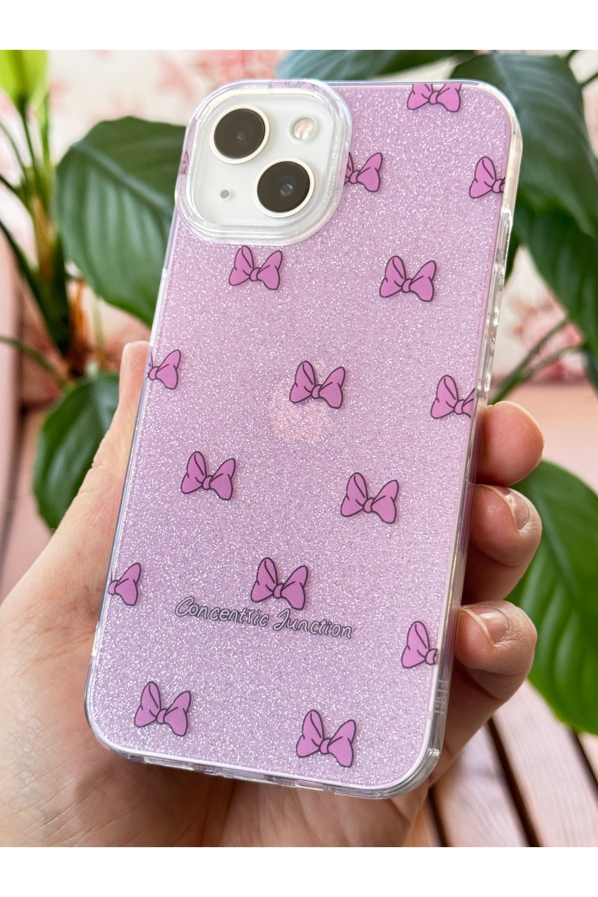 Apple iPhone 13/14 Uyumlu Kılıf Mor Simli Fiyonk Desenli Renkli Parlak Darbe Emici Kapak Apple iPhone 13/14 Uyumlu Kılıf Mor Simli Fiyonk Desenli Renkli Parlak Darbe Emici Kapak AYNALI İPHONE 13 تک سایز