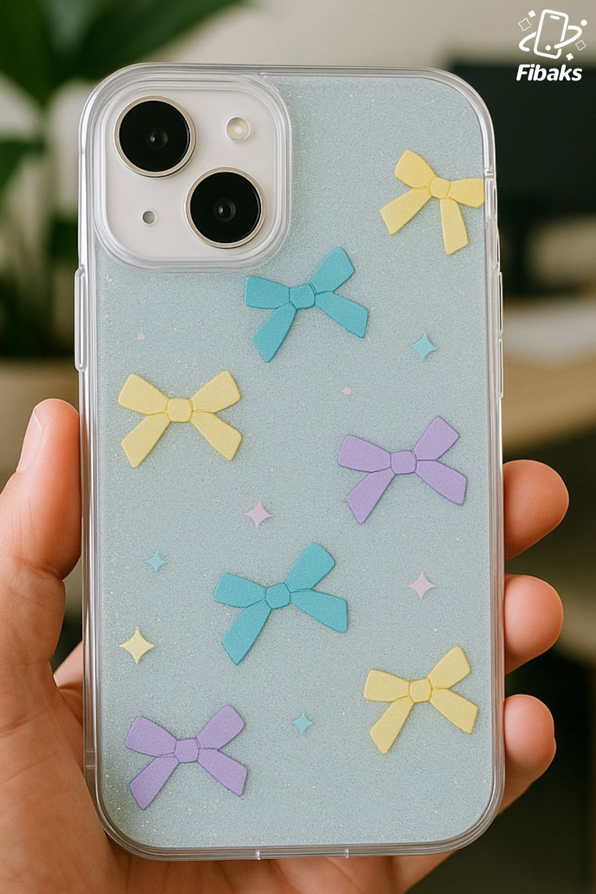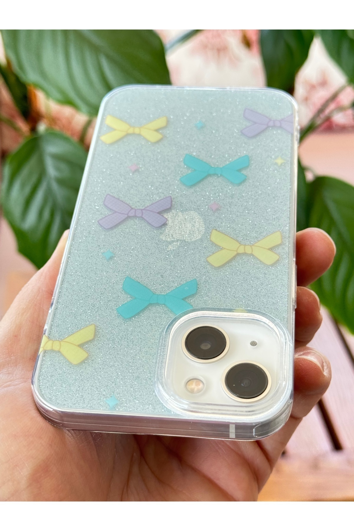 Apple iPhone 13/14 Uyumlu Kılıf Mavi Simli Renkli Fiyonk Desenli Parlak Darbe Emici Kapak Apple iPhone 13/14 Uyumlu Kılıf Mavi Simli Renkli Fiyonk Desenli Parlak Darbe Emici Kapak 13-14-15aynalı-taşlı-simli-desenli-pembe تک سایز