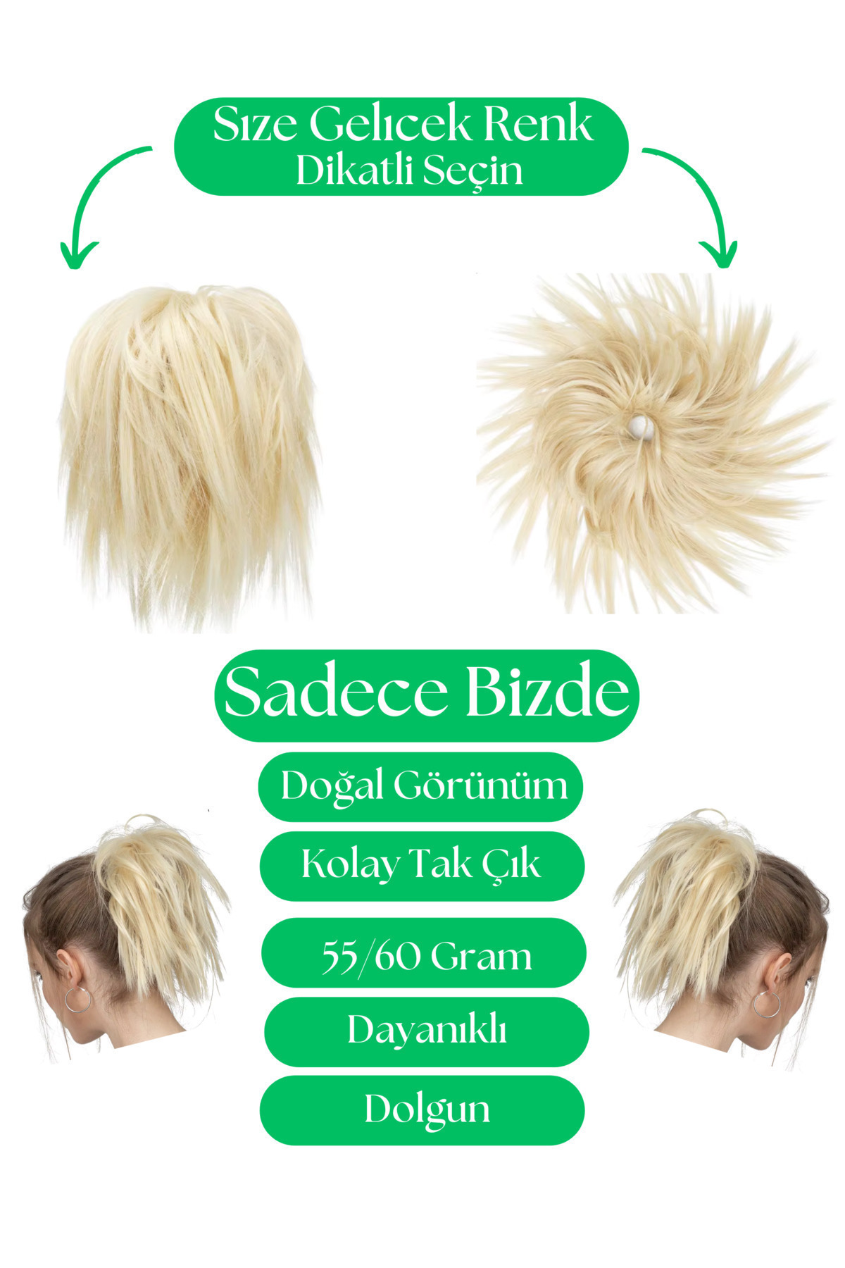 - Materyal Bileşeni : Kalıtelı Lastıklı Topuz Toka Saç Fıber Sentetık