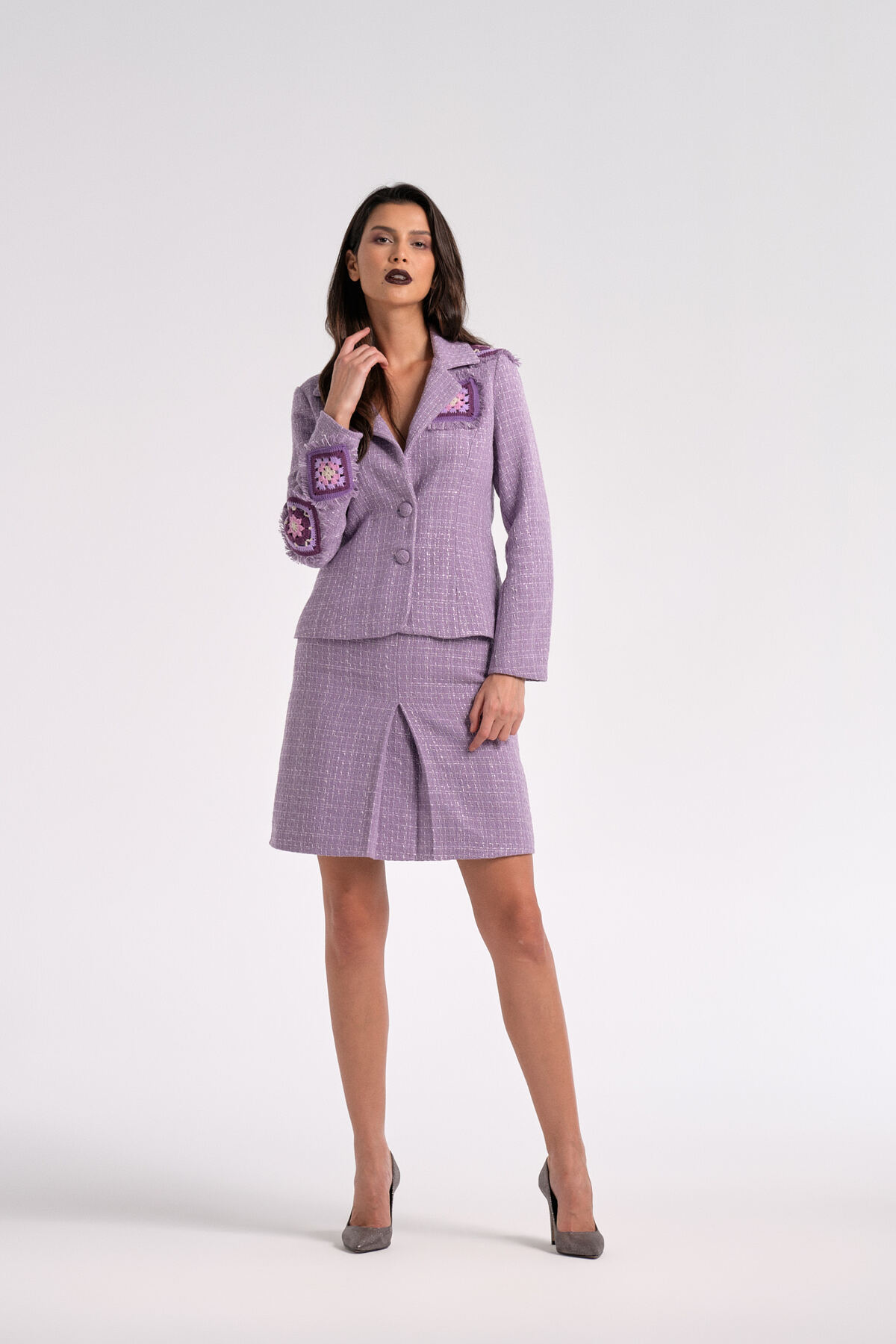 Düğmeli Bağlamalı Lila Oversize Kruvaze Ceket Düğmeli Bağlamalı Lila Oversize Kruvaze Ceket 2765C 42