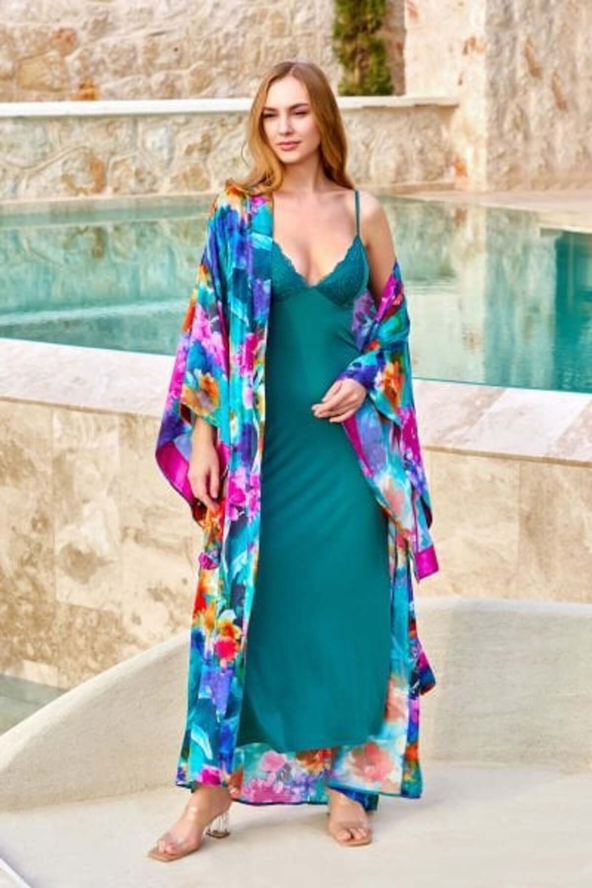 25685 Kadın Yeşil Askılı Dantel Ve Yırtmaç Detay Uzun Gecelik 25685 Kadın Yeşil Askılı Dantel Ve Yırtmaç Detay Uzun Gecelik 42