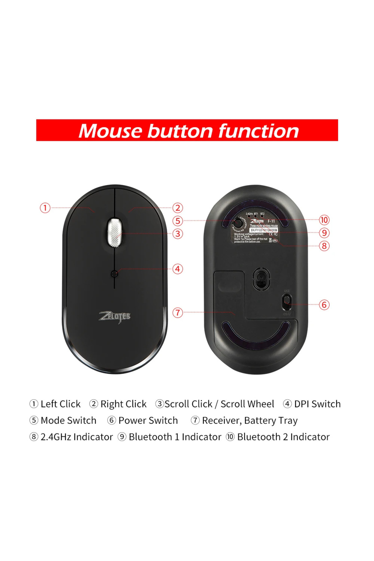 F-11 Üç Modlu Mini Kablosuz Bluetooth 2.4g 2400 Dpı Mouse F-11 Üç Modlu Mini Kablosuz Bluetooth 2.4g 2400 Dpı Mouse F11 تک سایز