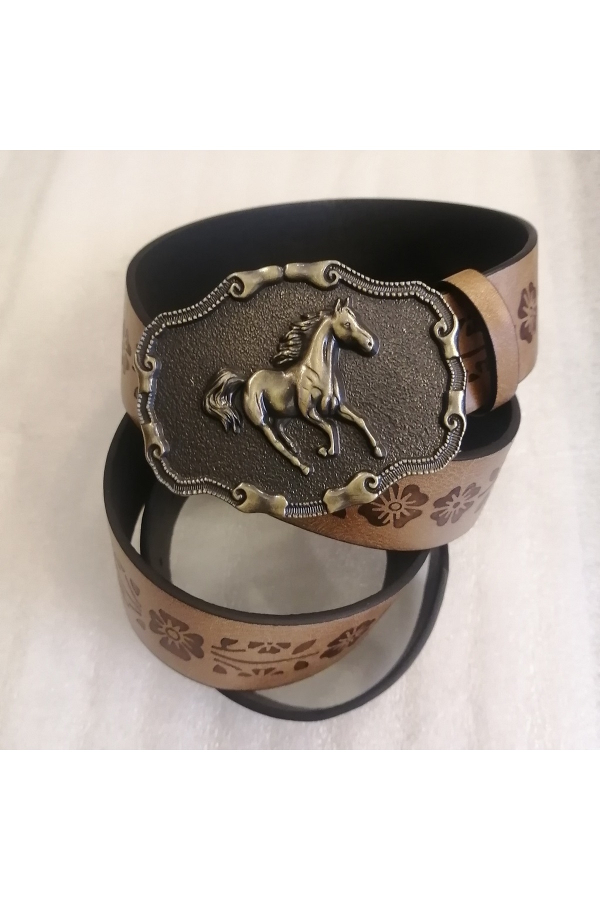 Unisex otantik suni deri bej çiçek baskılı bronz koşan at kovboy tokalı kemer Tayland Malı Unisex otantik suni deri bej çiçek baskılı bronz koşan at kovboy tokalı kemer Tayland Malı 5575973 120 CM