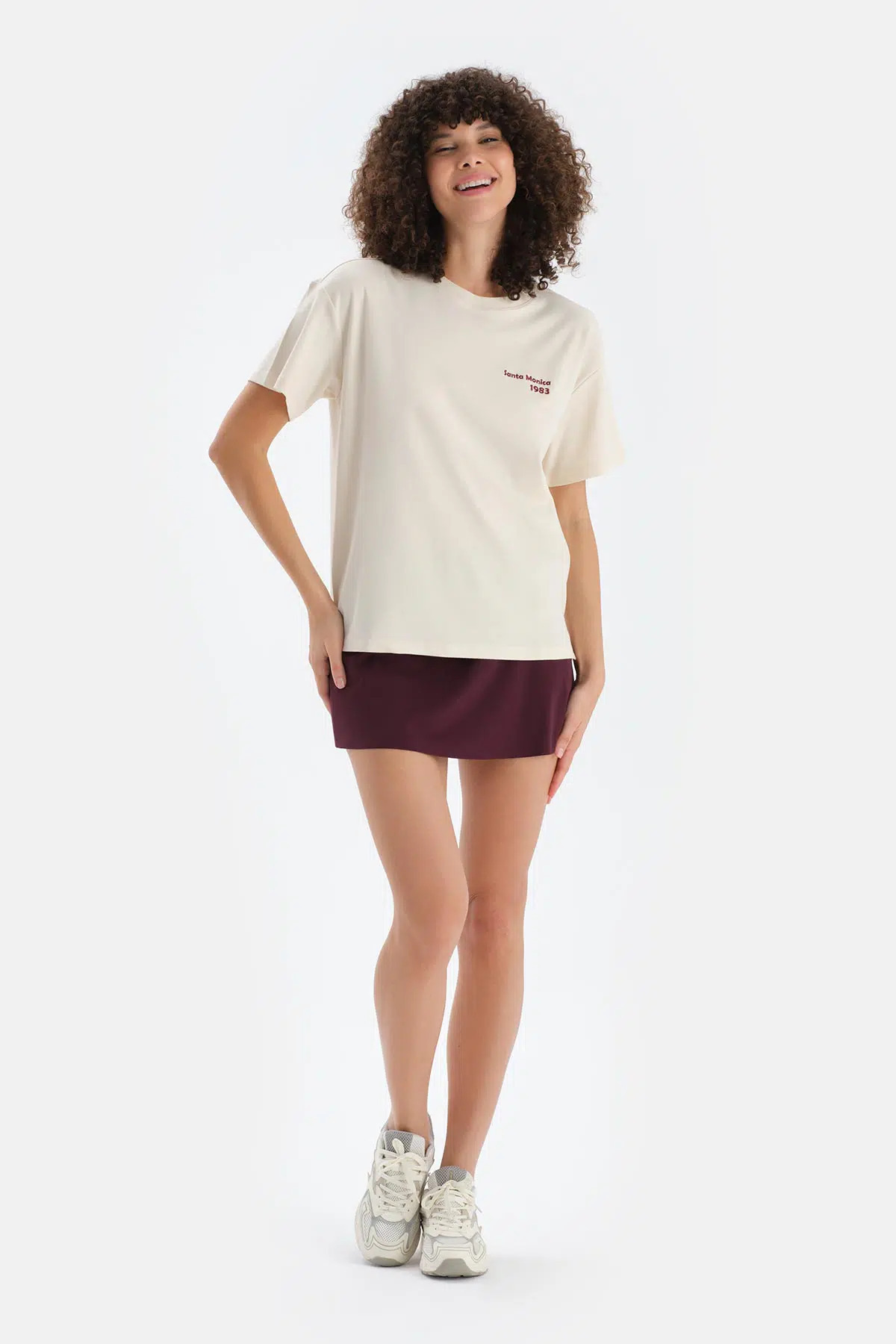 Ekru Kadın Slogan Baskılı Tişört Ekru Kadın Slogan Baskılı Tişört 25SW11384BB_316 2XL