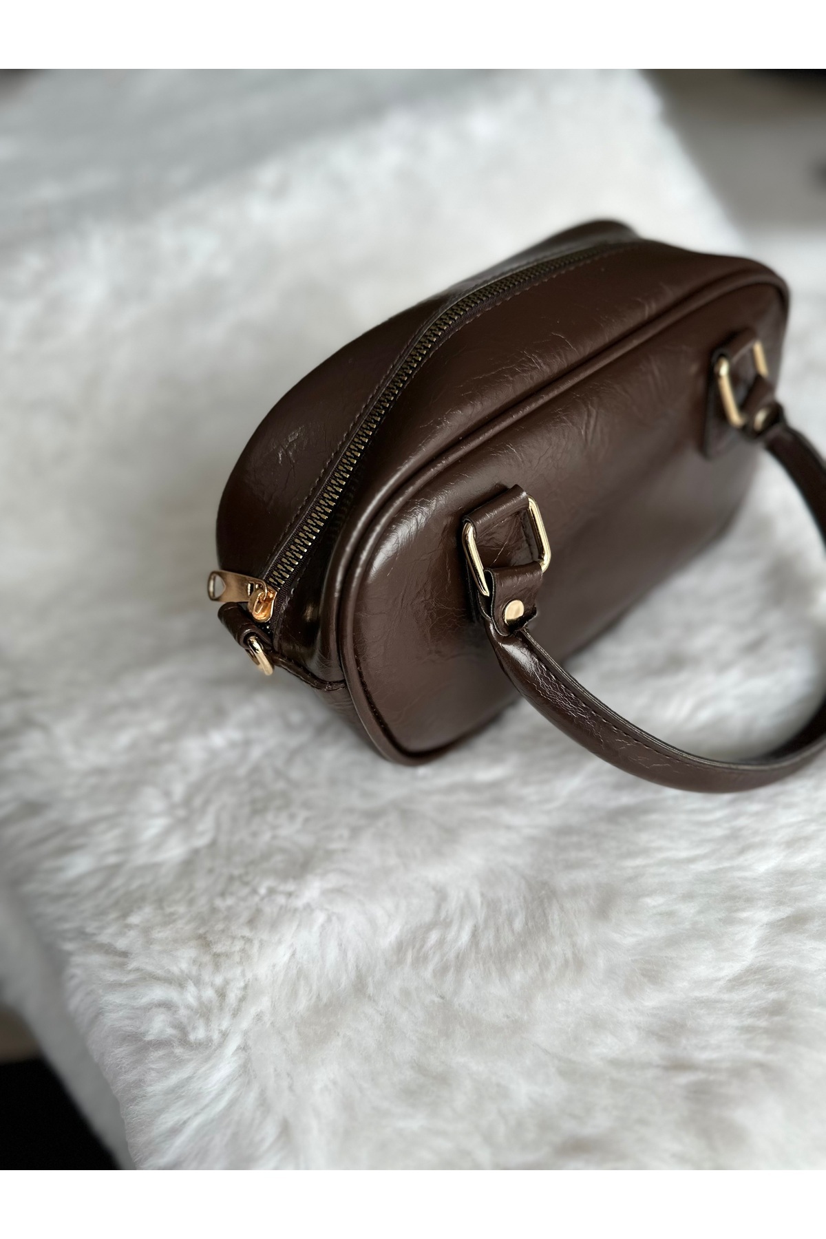 Kahve Deri Minik Charm Detaylı Dokulu Çanta Kahve Deri Minik Charm Detaylı Dokulu Çanta NCB12 Standart