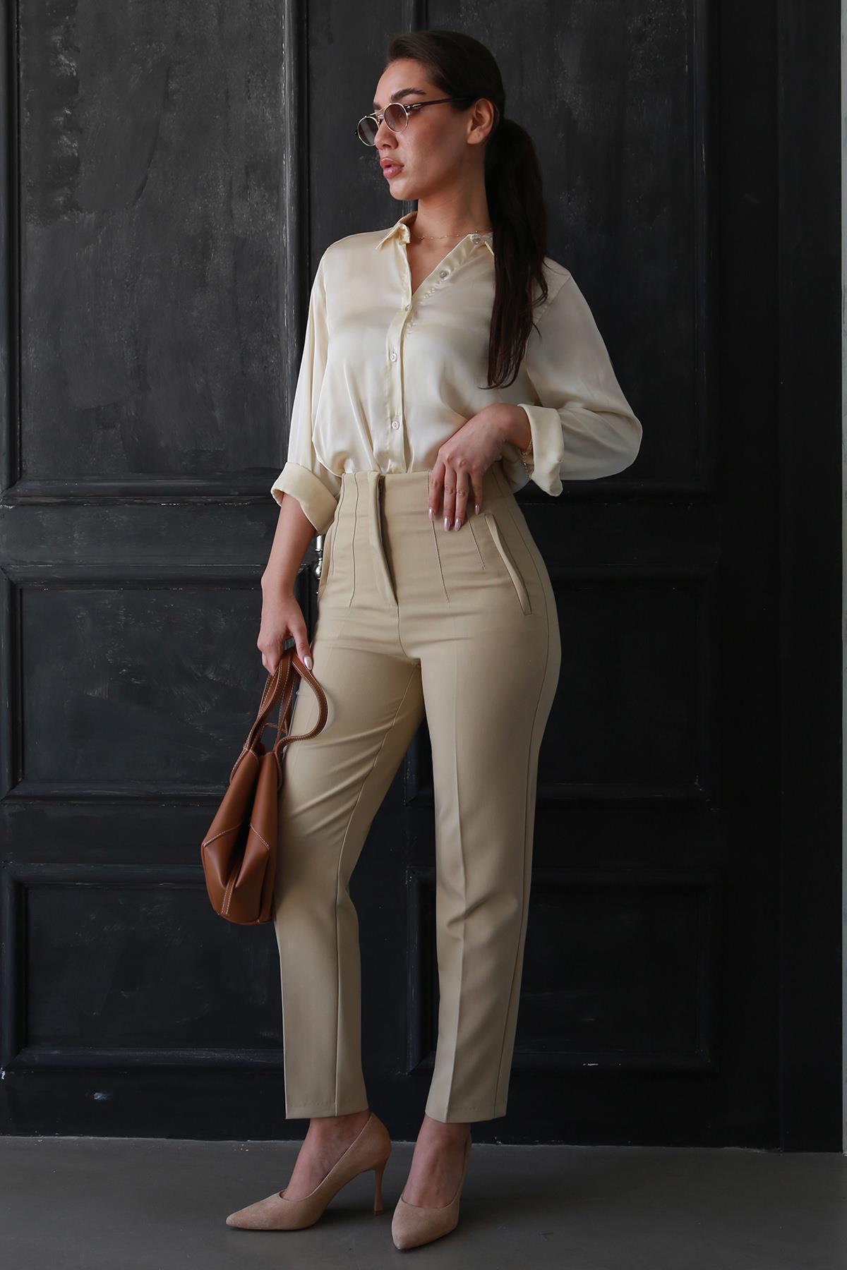Bej Önü Biyeli Yüksek Bel Kadın Pantolon MG2425 Bej Önü Biyeli Yüksek Bel Kadın Pantolon MG2425 2XL