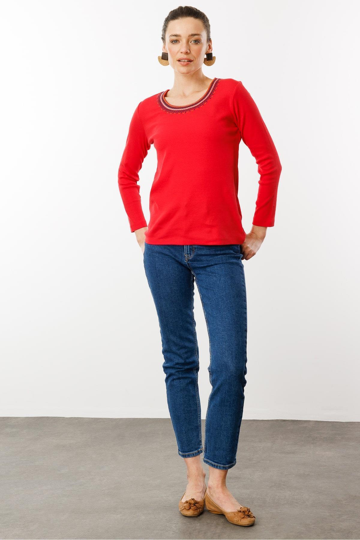 Kadın Sıfır Yaka Yakası Nakış Işlemeli Pamuklu Bluz Kırmızı Kadın Sıfır Yaka Yakası Nakış Işlemeli Pamuklu Bluz Kırmızı 8124202525759 XL
