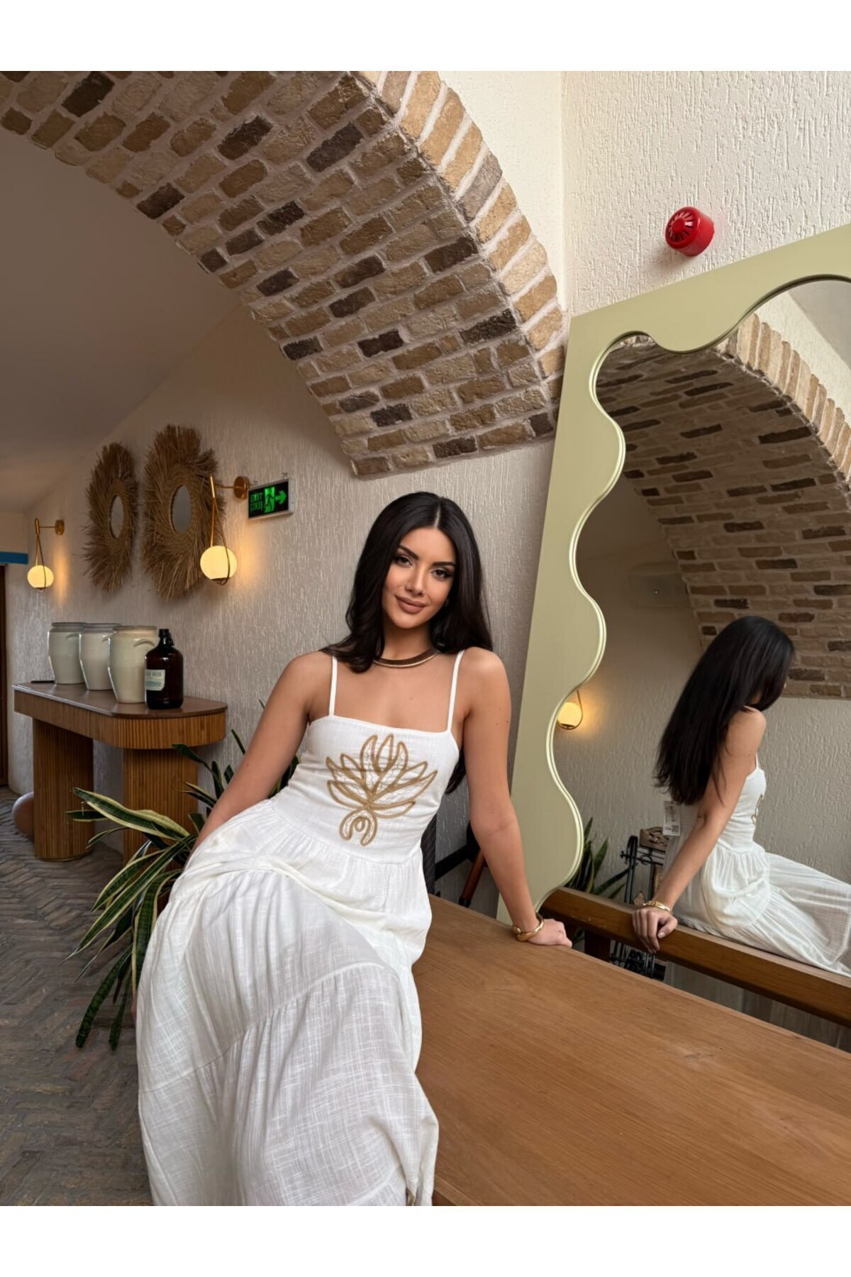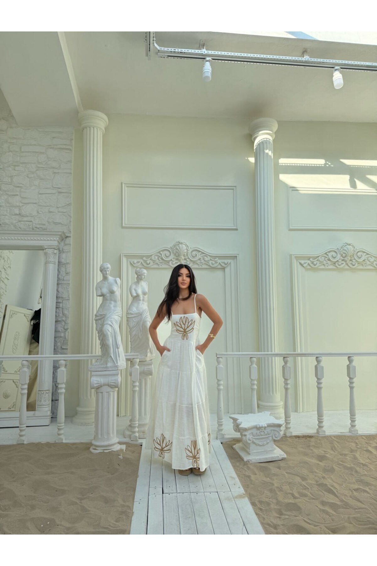 Altın Nakış Yaprak Askılı Zarif Sahil Uzun Elbise Altın Nakış Yaprak Askılı Zarif Sahil Uzun Elbise FC741309 42