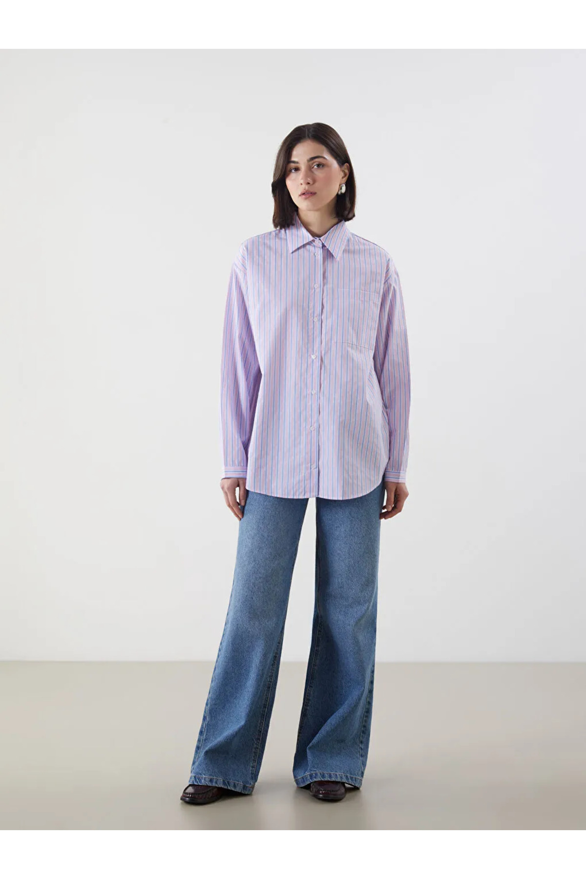LCW Modest Pembe Çizgili Oversize Poplin Kadın Gömlek Tunik LCW Modest Pembe Çizgili Oversize Poplin Kadın Gömlek Tunik TYC0923738974MS5MP95Z8010 XS-S