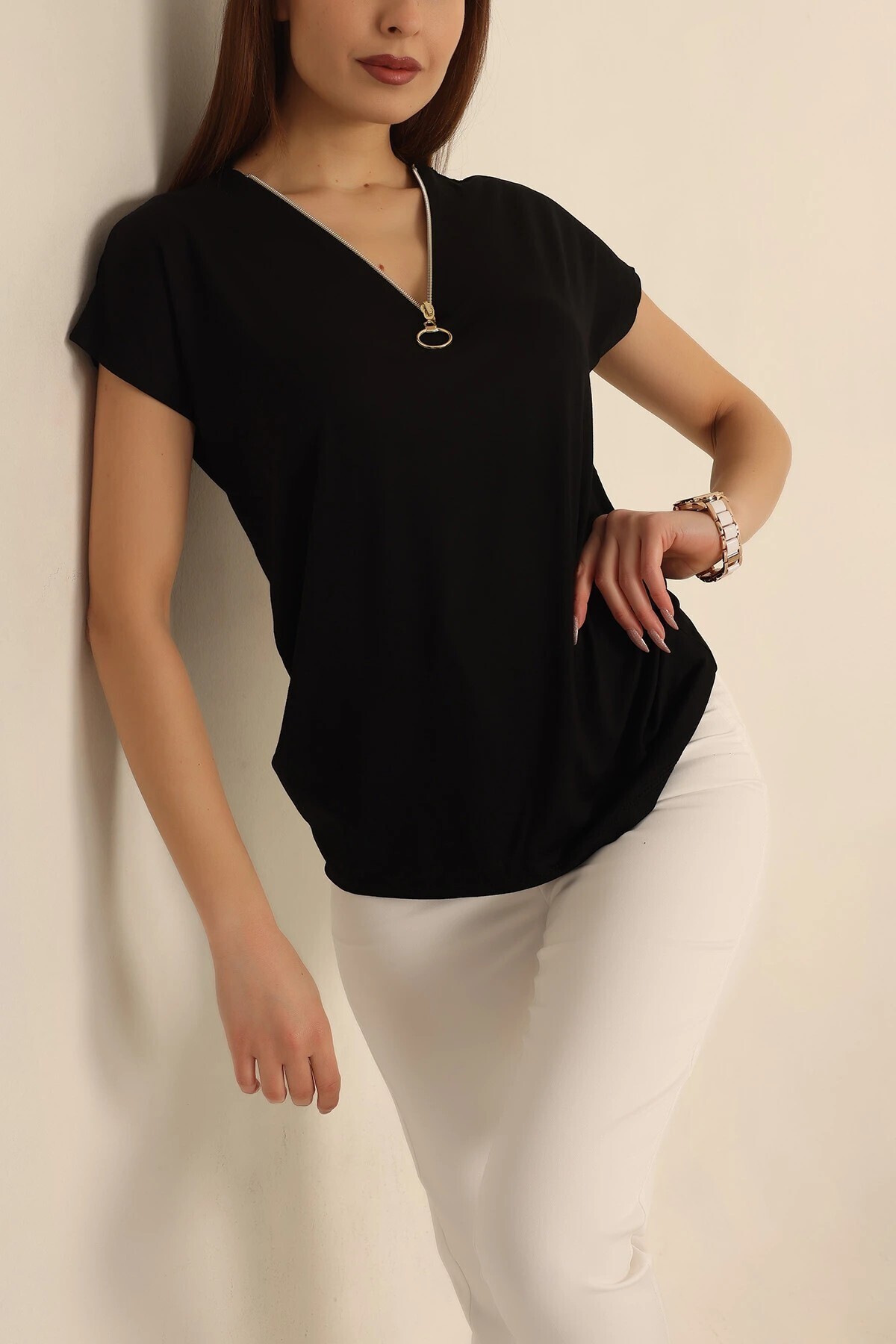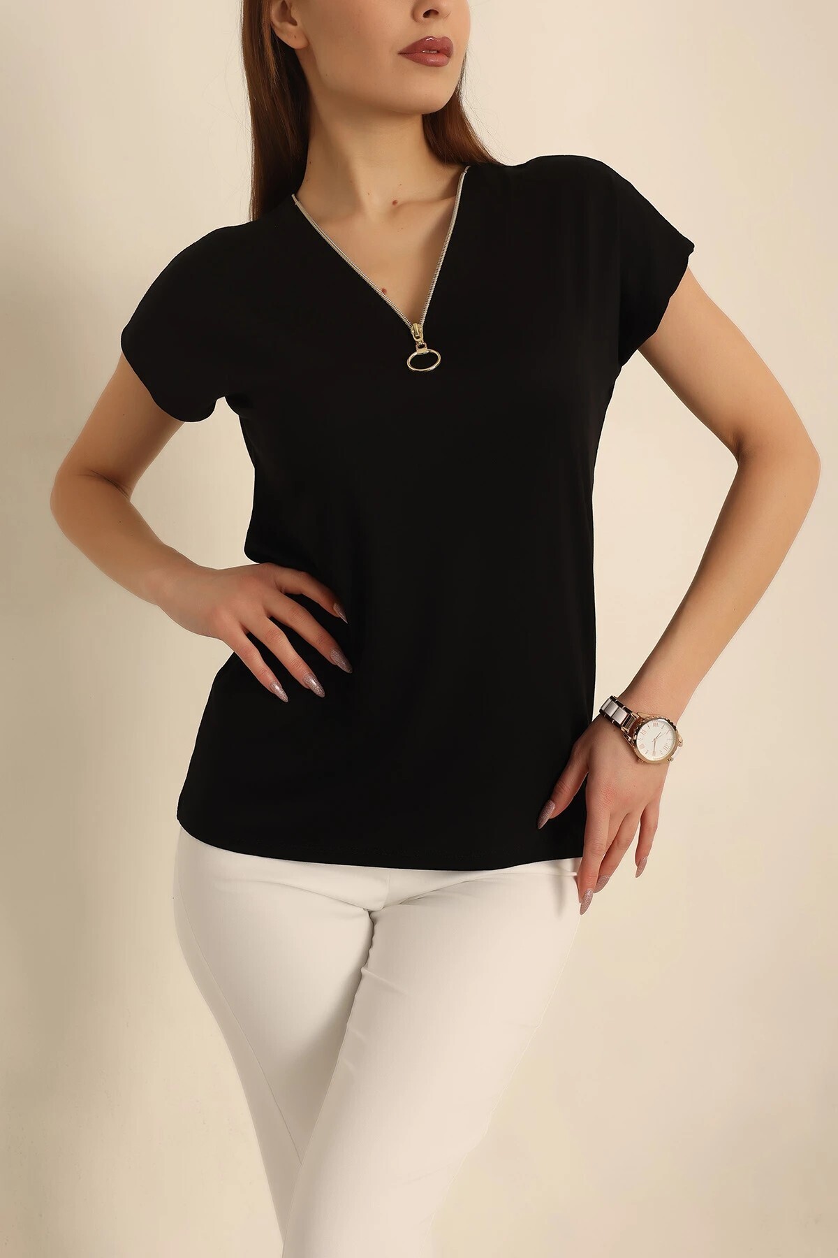 FERMUAR DETAYLI V YAKA BLUZ FERMUAR DETAYLI V YAKA BLUZ LUMORAFRMVSCBLZ1 L