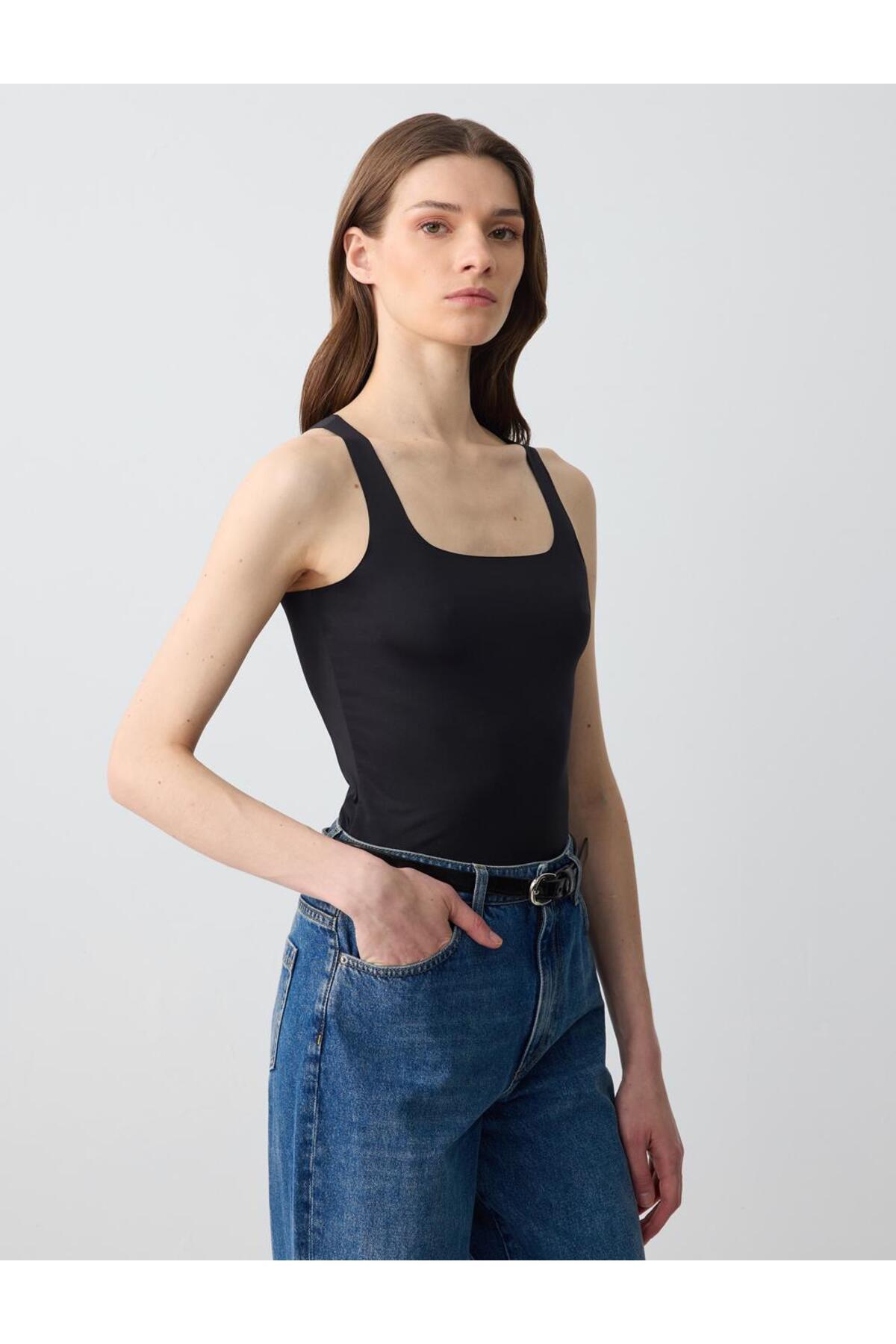 Siyah U Yaka Dar Kesim Kolsuz Örme Atlet Siyah U Yaka Dar Kesim Kolsuz Örme Atlet 5SW033872 2XL