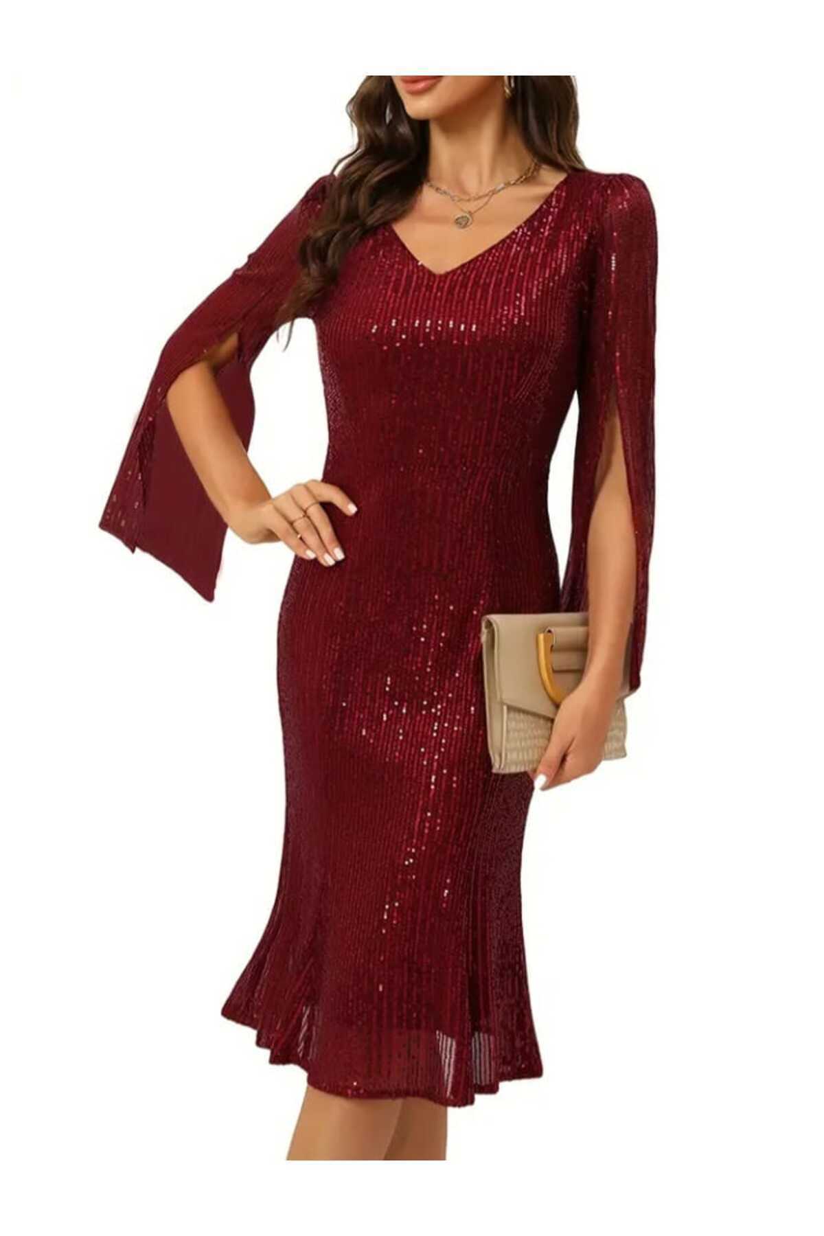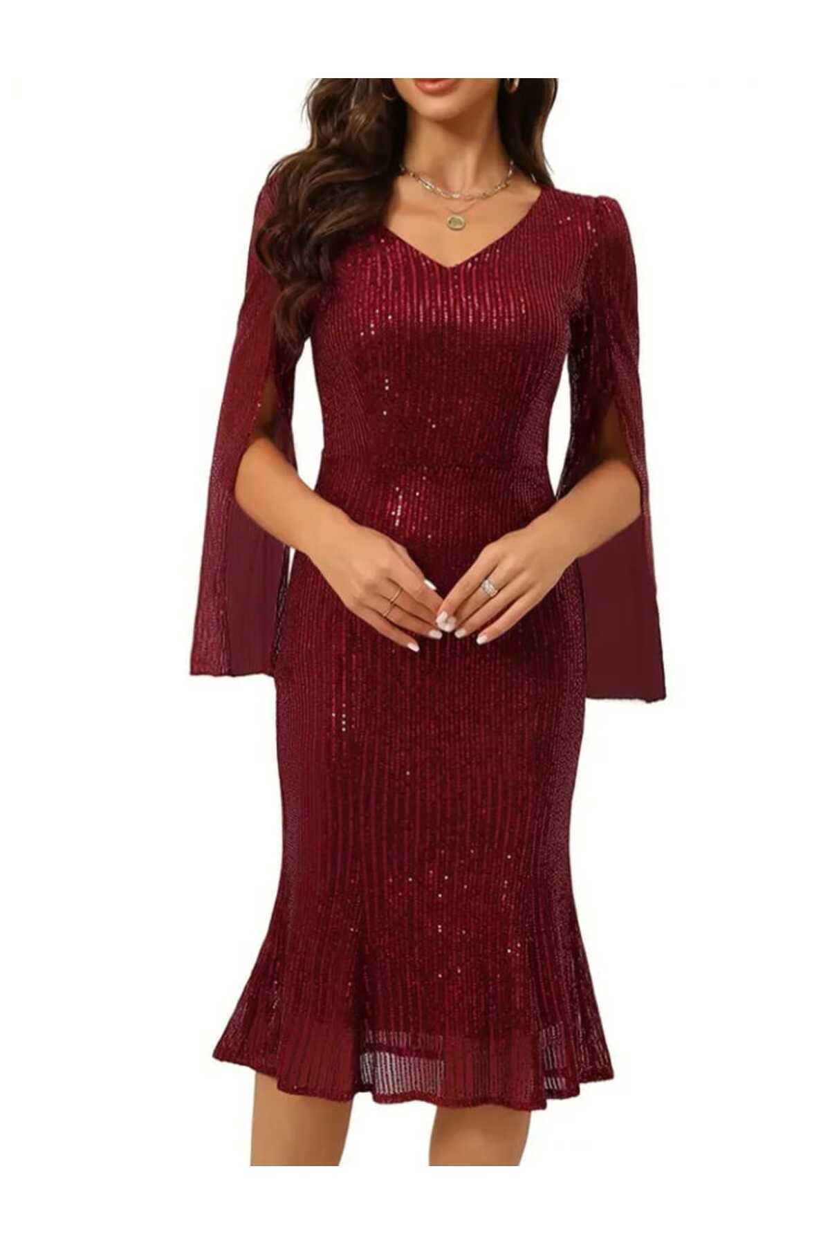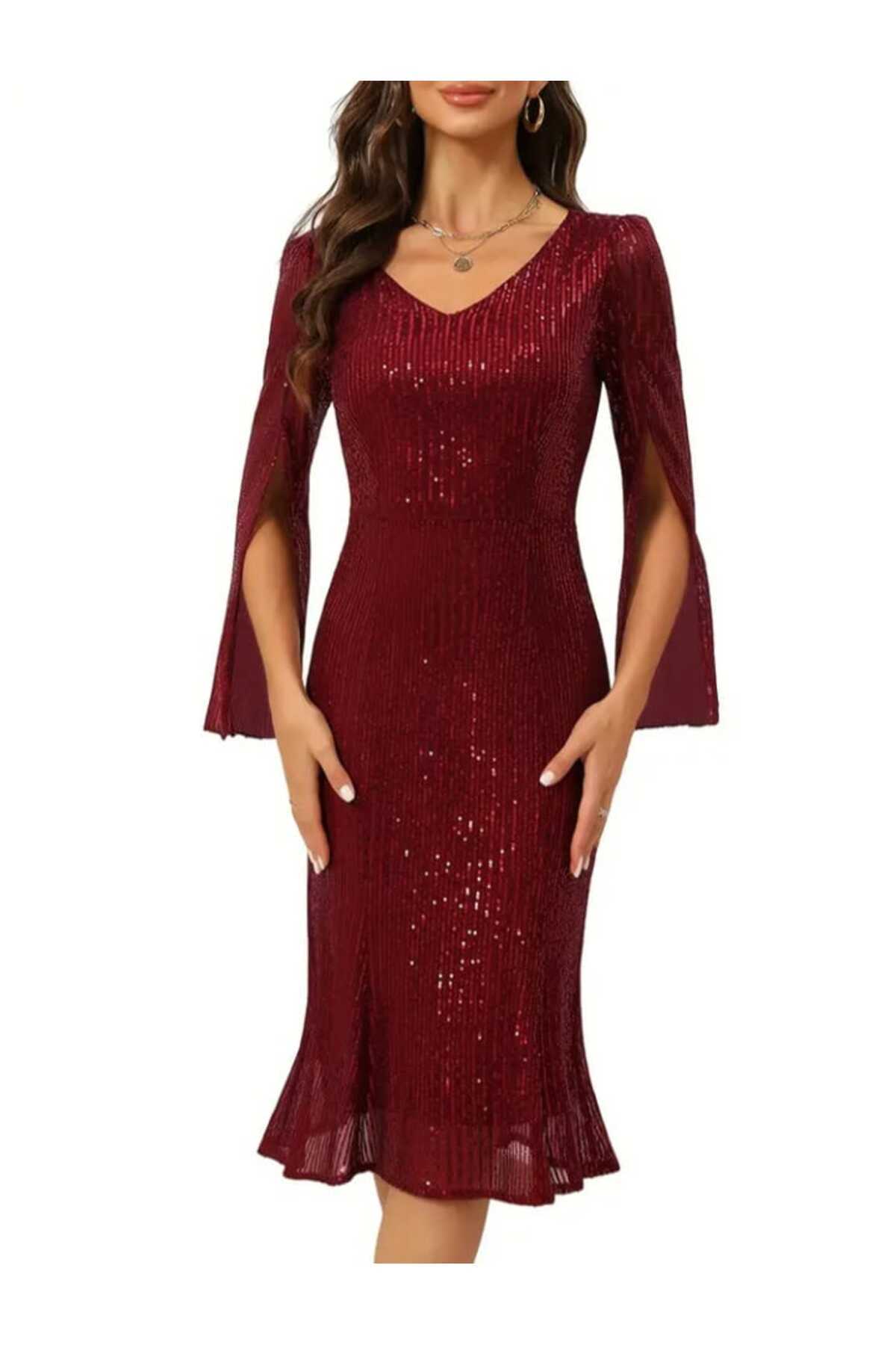 V YAKA PULPAYET MİDİ ELBİSE V YAKA PULPAYET MİDİ ELBİSE 144 44