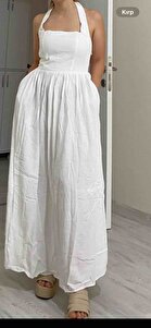 Boyundan Kalın Askılı Sırt Dekolteli Keten Elbise Ekru Boyundan Kalın Askılı Sırt Dekolteli Keten Elbise Ekru 25YELB00308 L