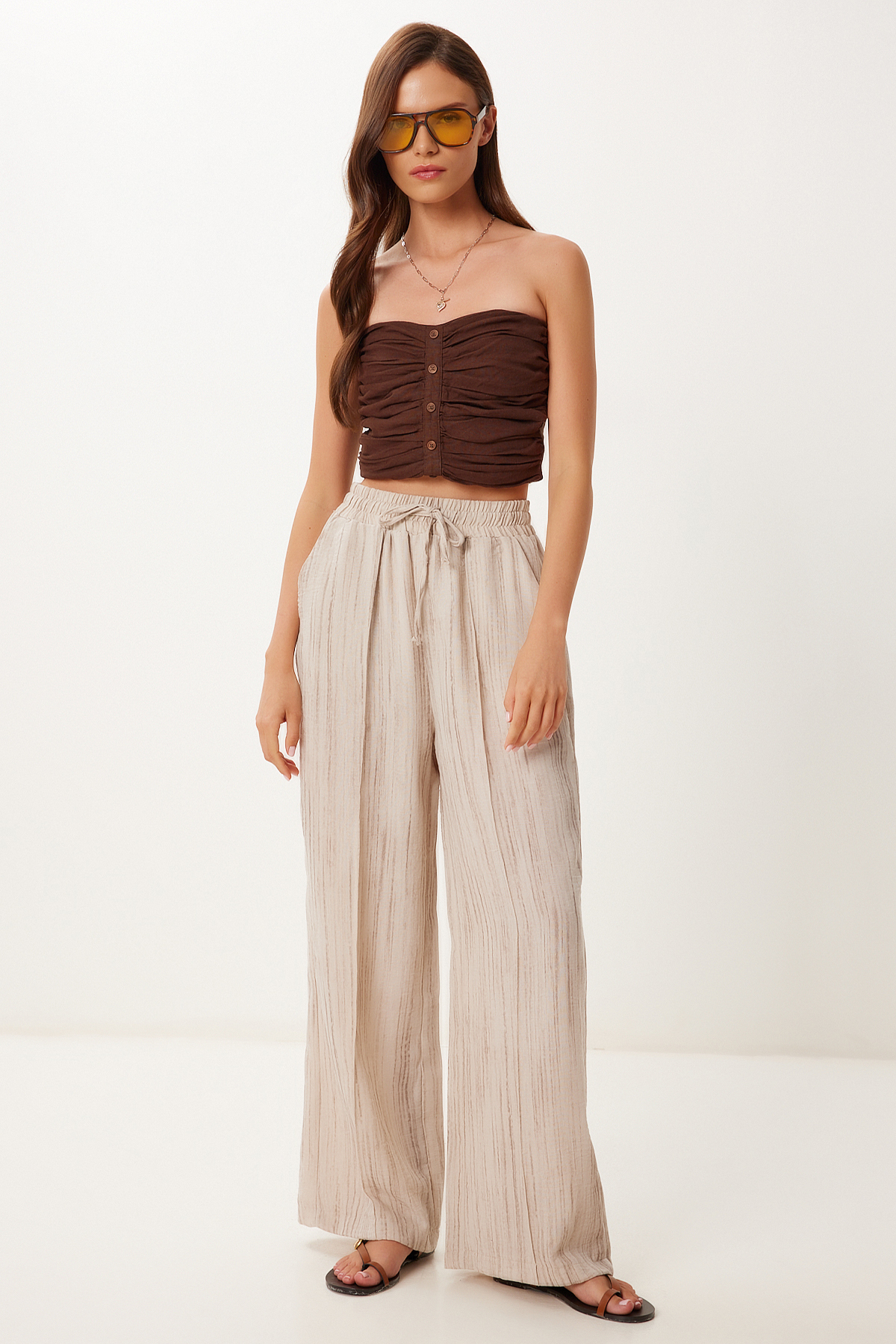 Kadın Siyah Dokulu Geniş Paça Yazlık Örme Pantolon ZV00272 Kadın Siyah Dokulu Geniş Paça Yazlık Örme Pantolon ZV00272 40