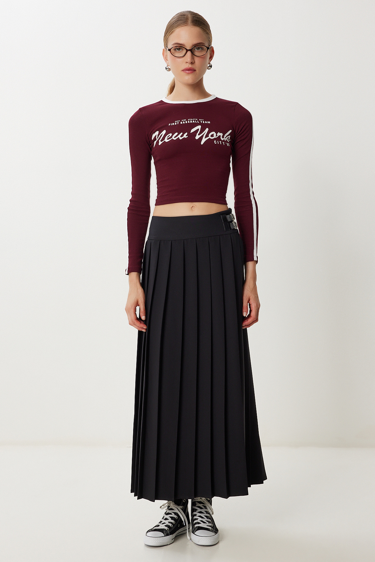 Kadın Kahverengi Pileli Volanlı Şifon Etek DP00237 Kadın Kahverengi Pileli Volanlı Şifon Etek DP00237 40