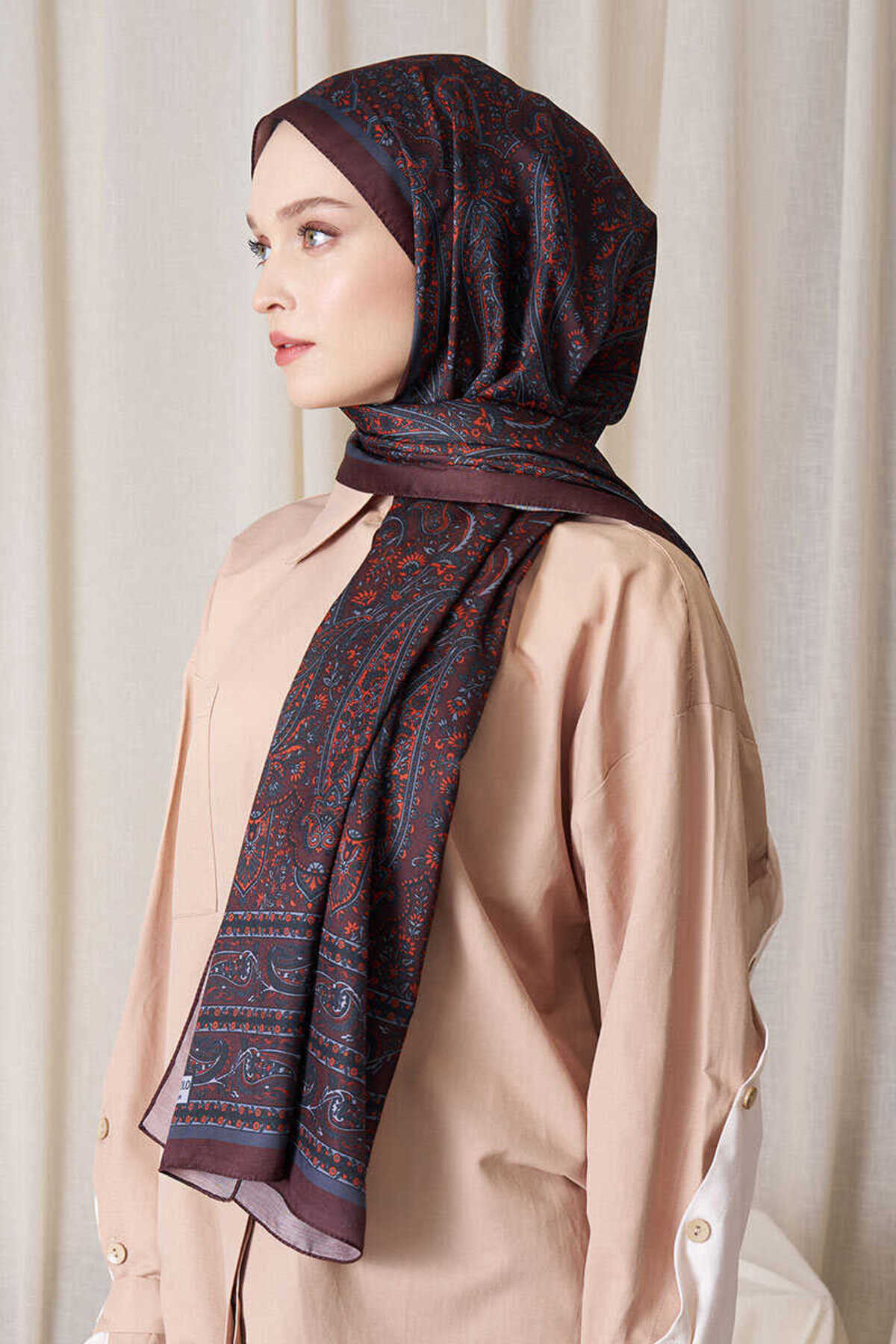 Historical Veloria Desen Şal - Kızıl Kahve Historical Veloria Desen Şal - Kızıl Kahve T1125-3 تک سایز