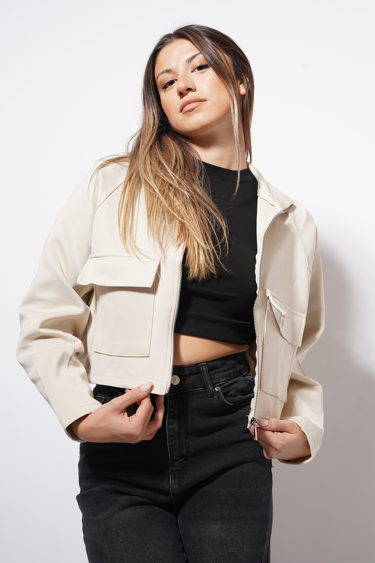 Omuz Vatkalı Fermuarlı Ceket Haki Omuz Vatkalı Fermuarlı Ceket Haki Omuz1 36-38